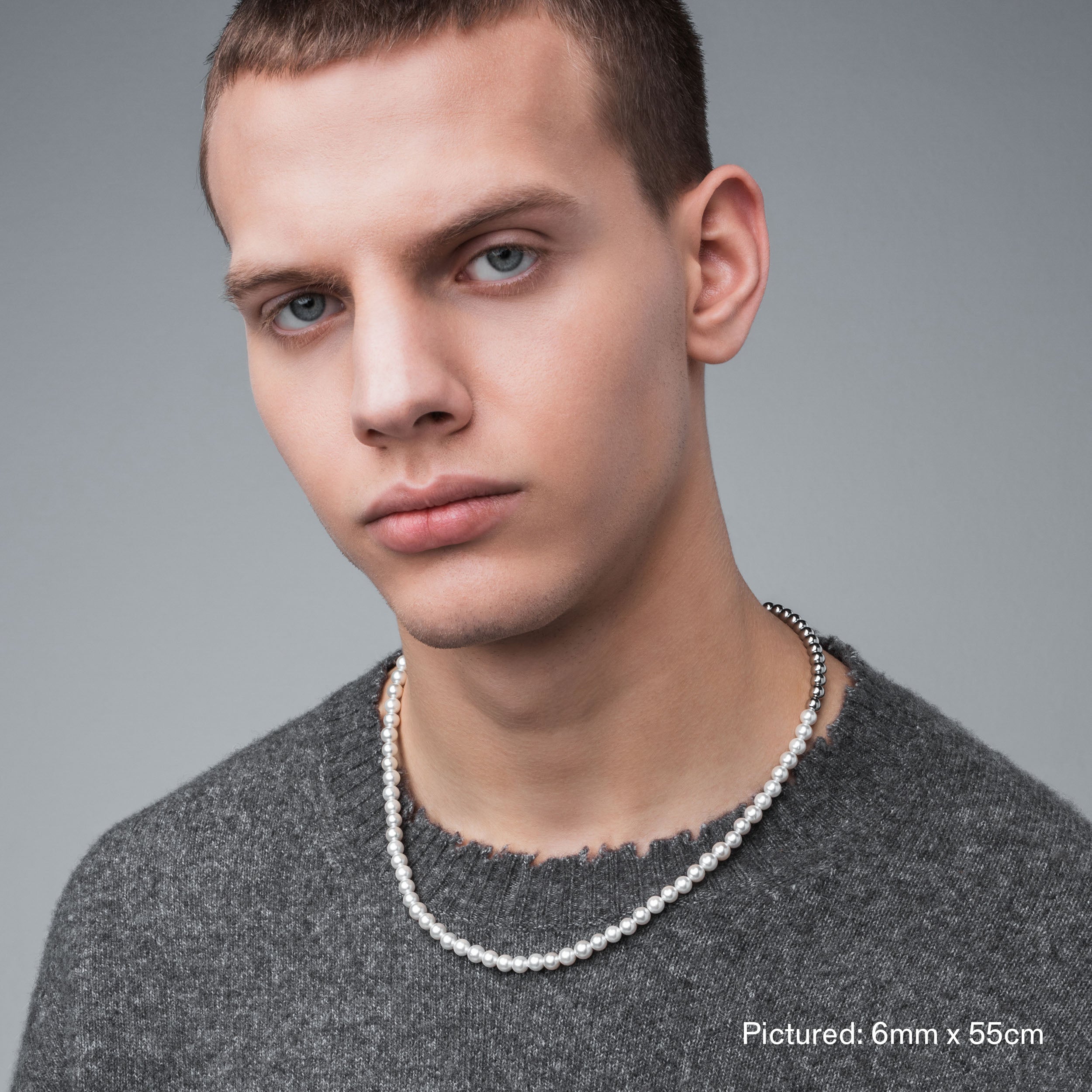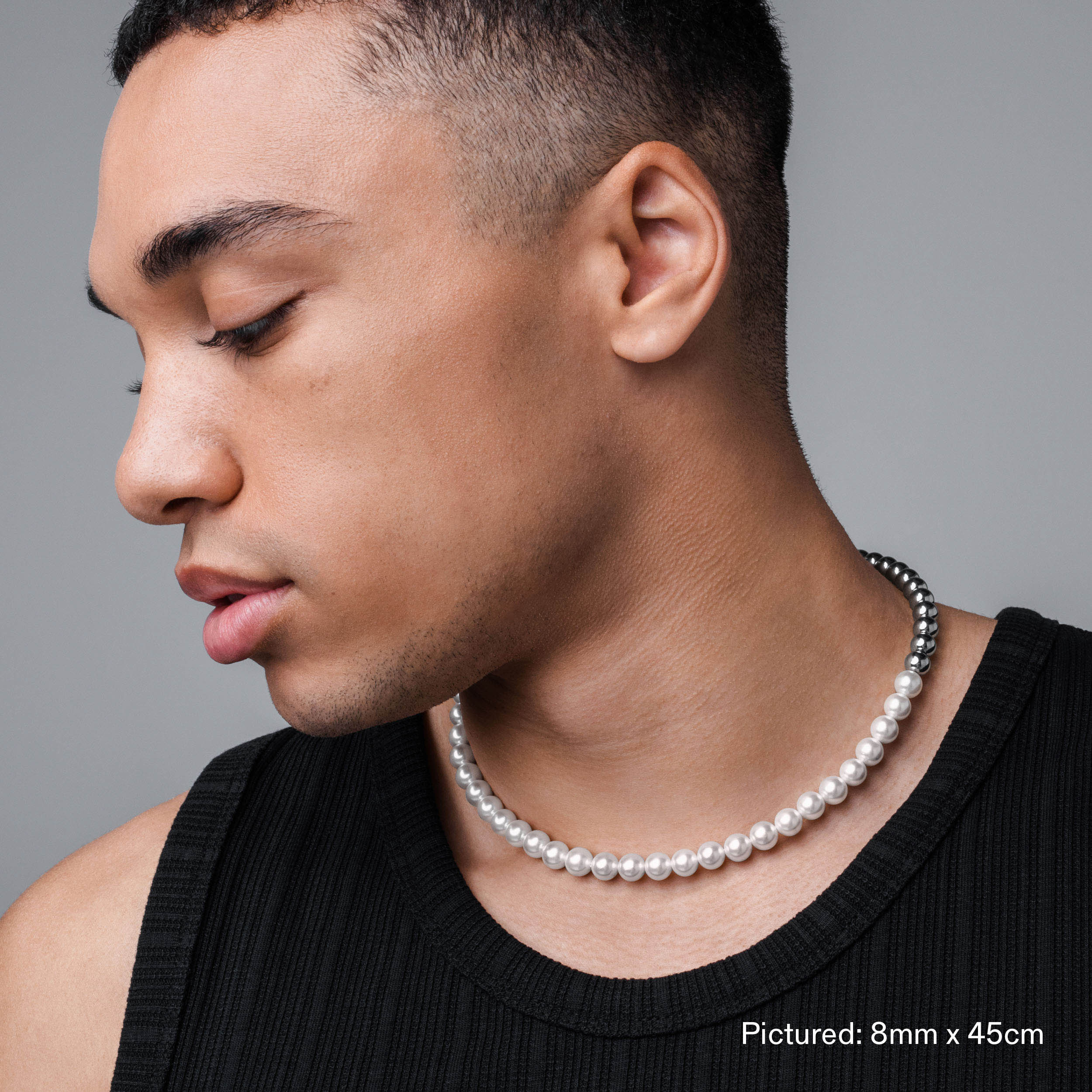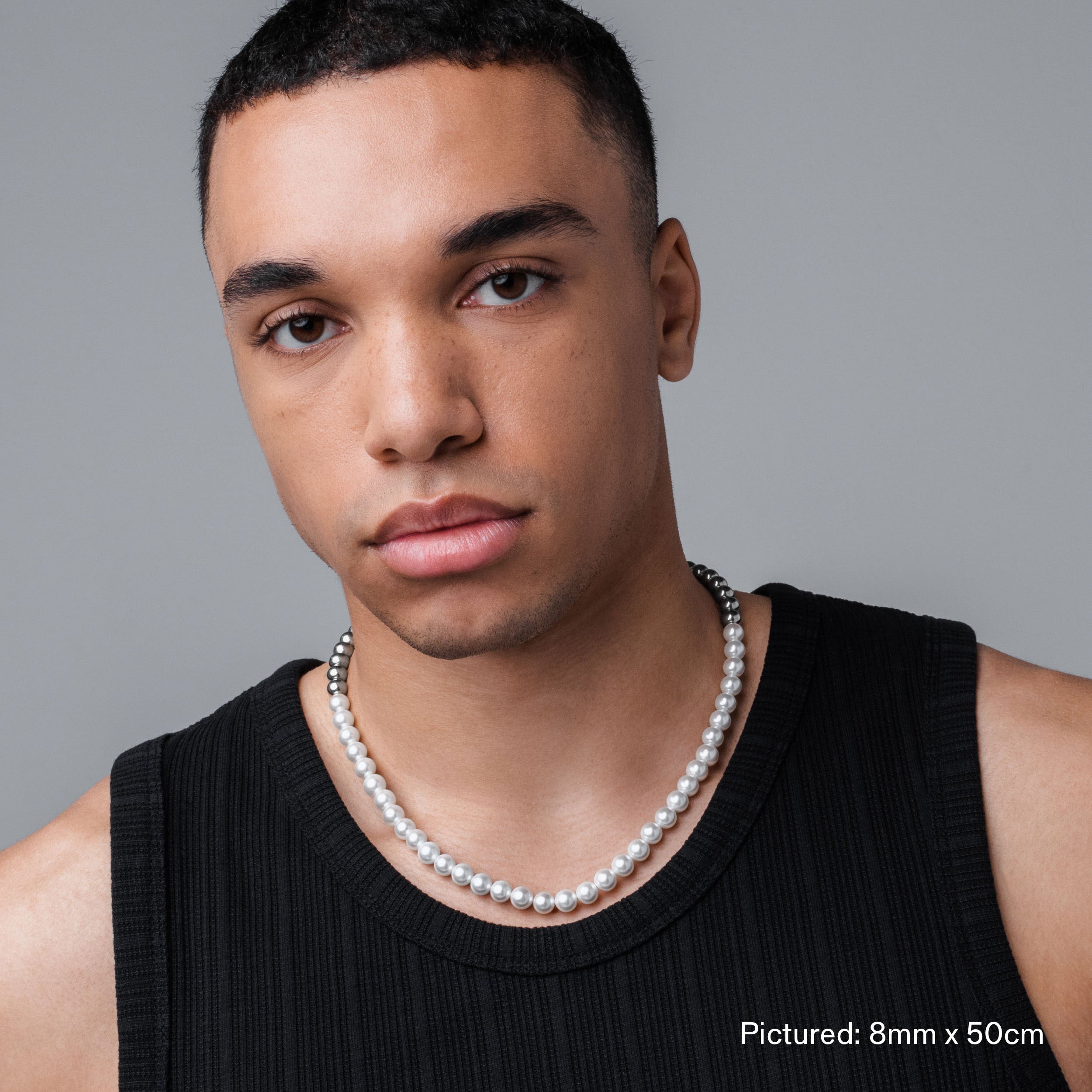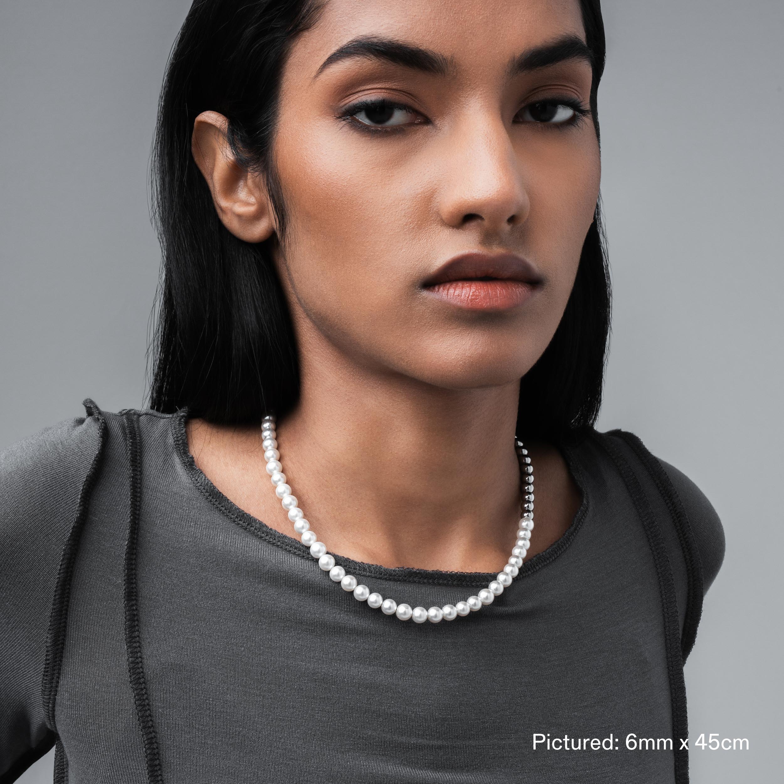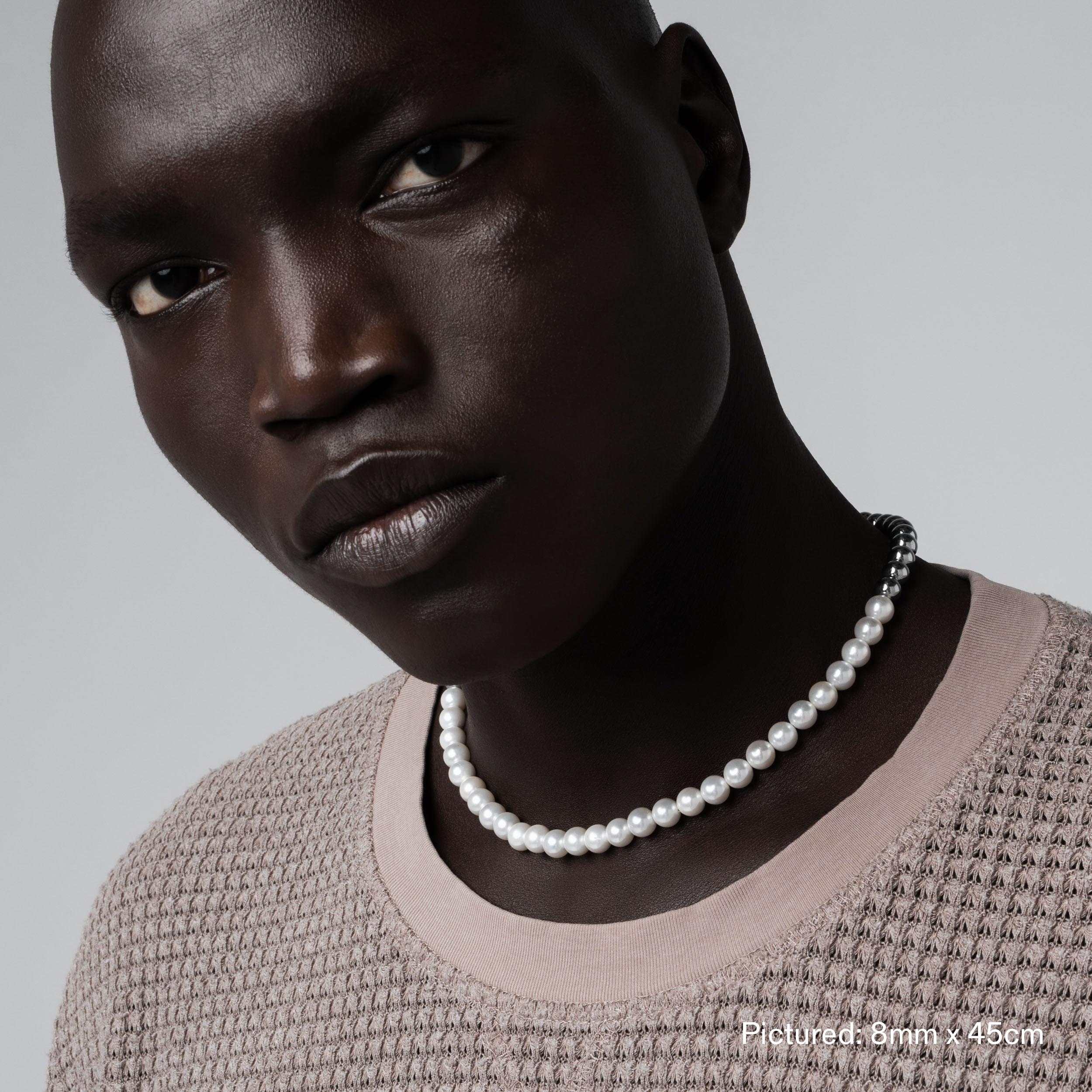 Materials: Stainless Steel. Synthetic Pearls. Available in 45cm (18). 50cm (20) and 55cm (22) lengths.