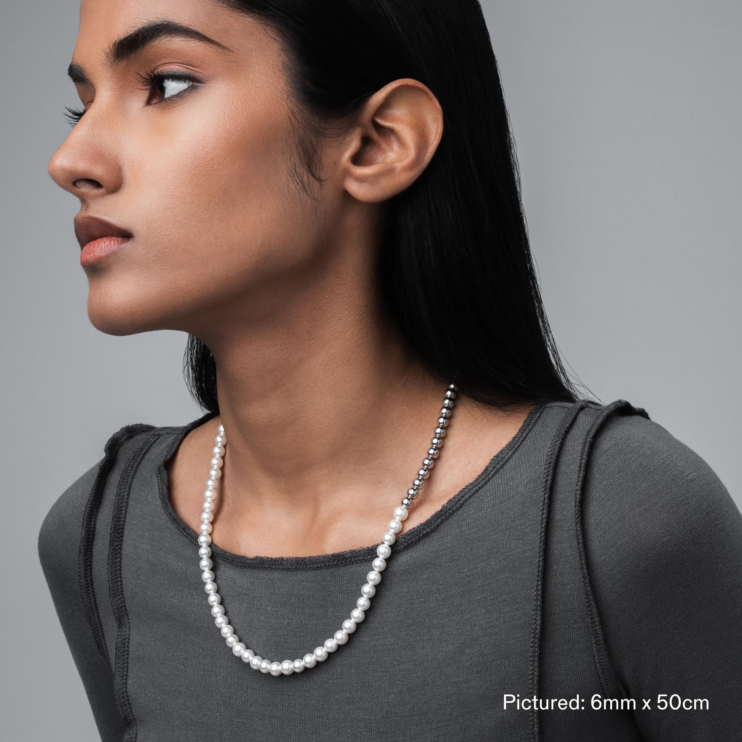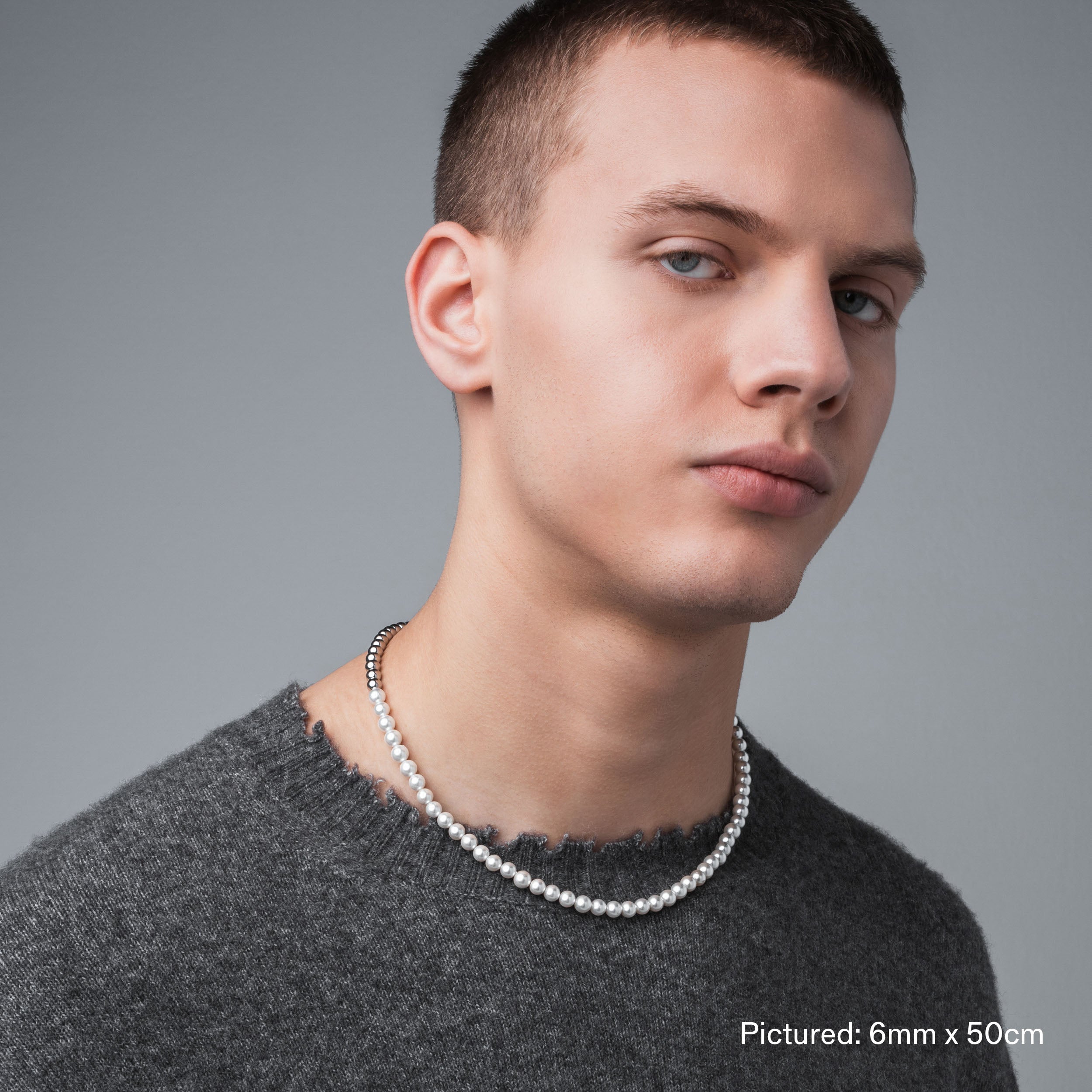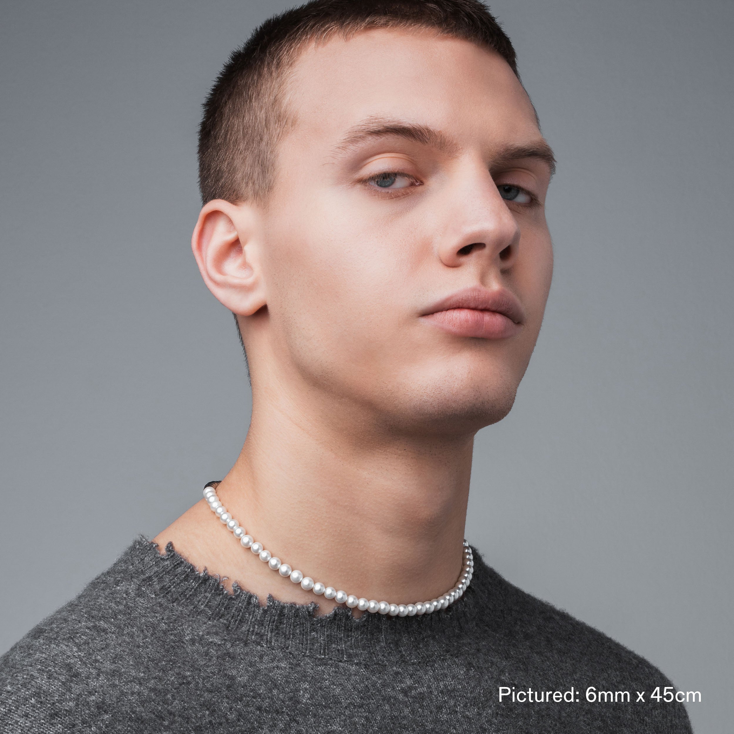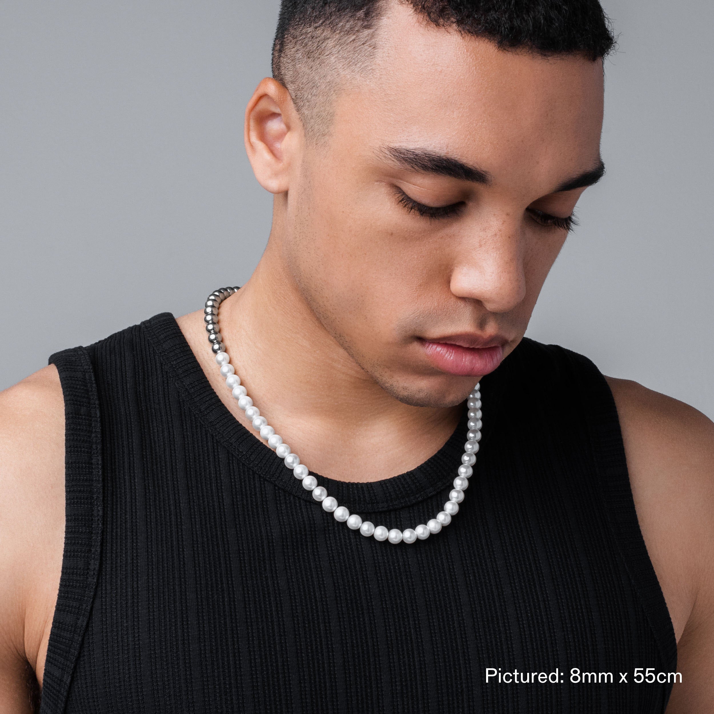 Materials: Stainless Steel. Synthetic Pearls. Available in 45cm (18). 50cm (20) and 55cm (22) lengths.