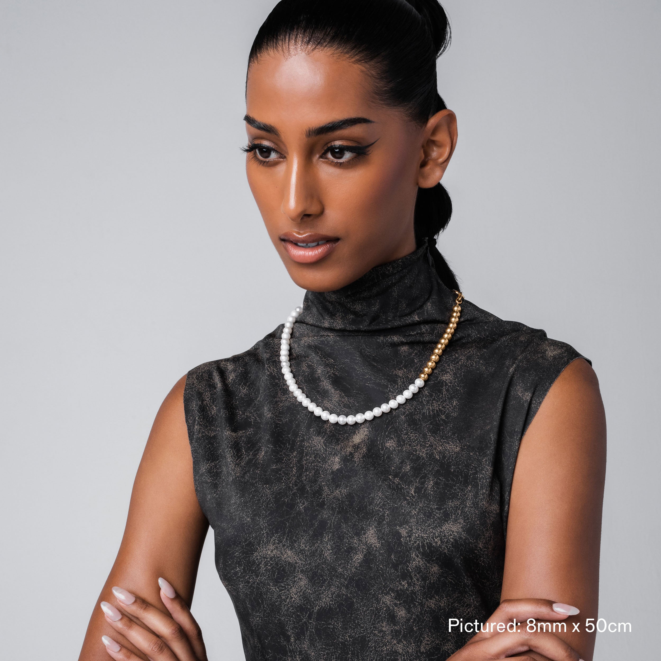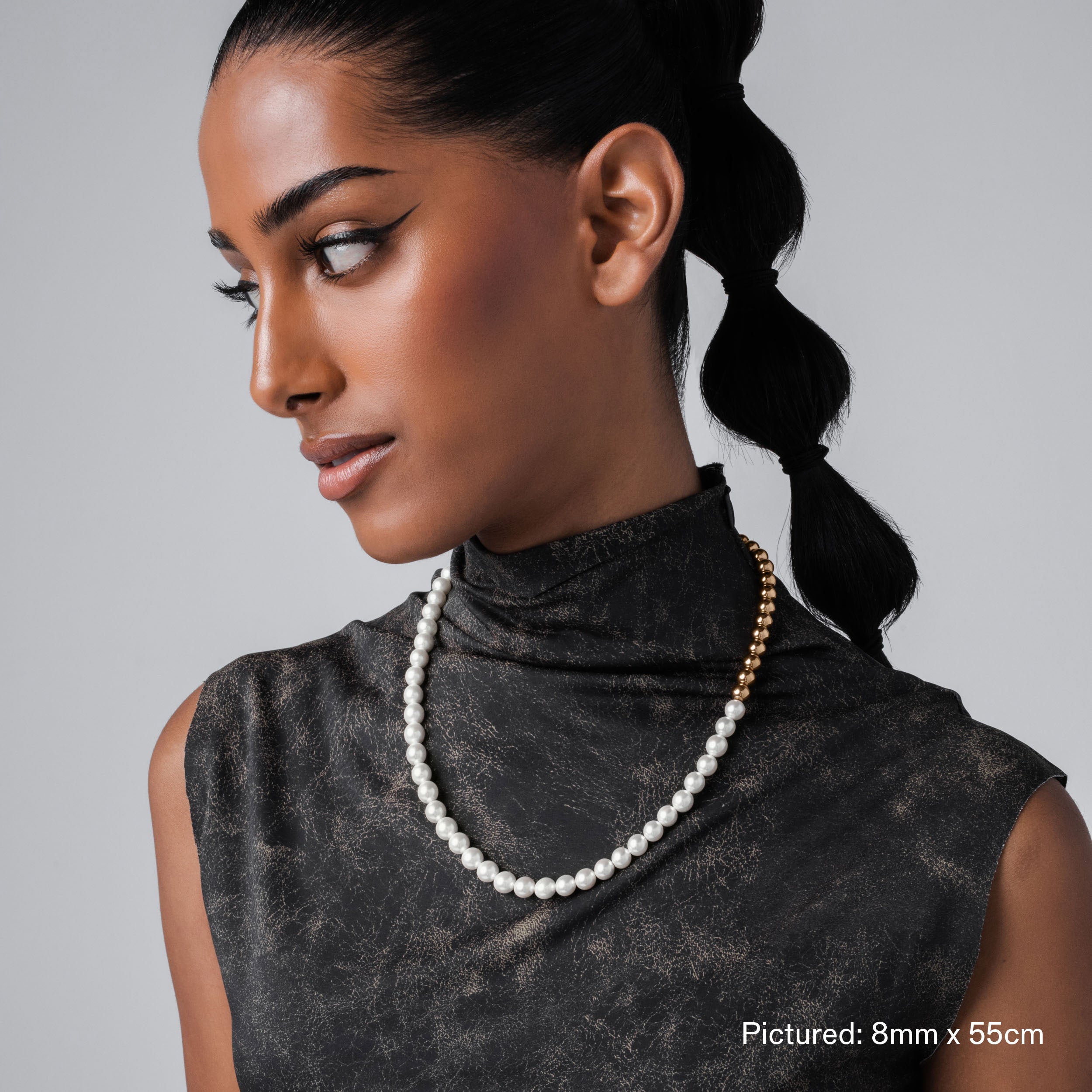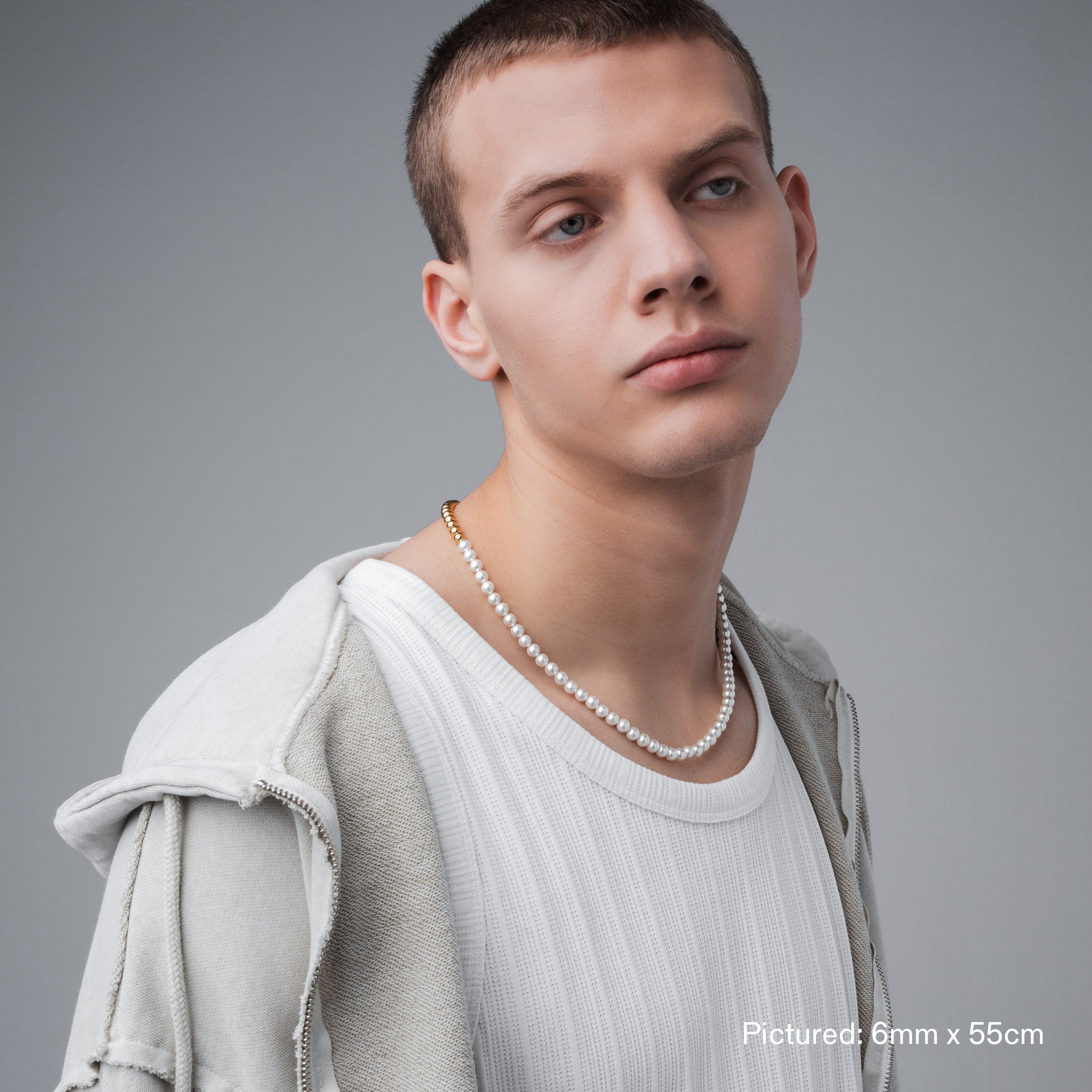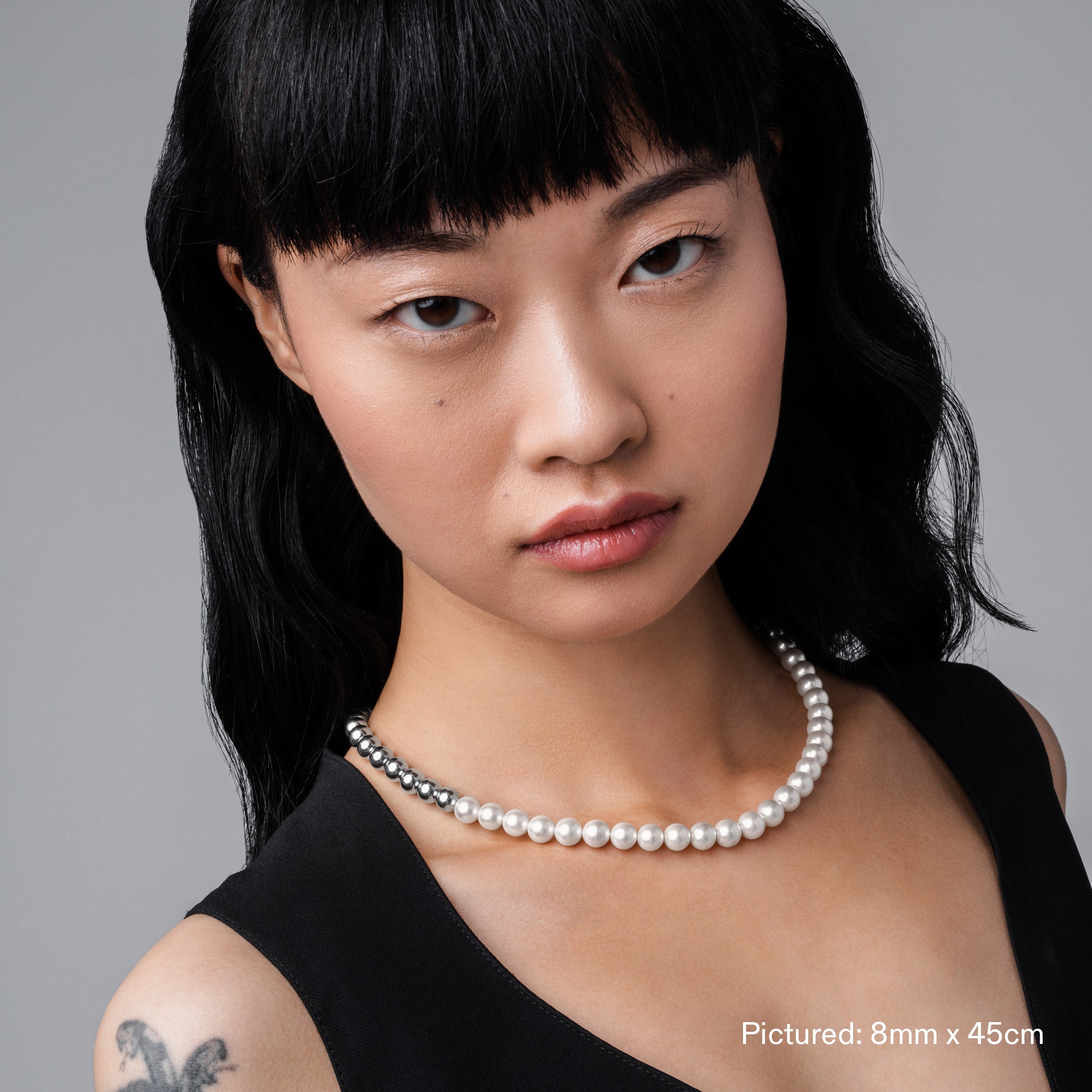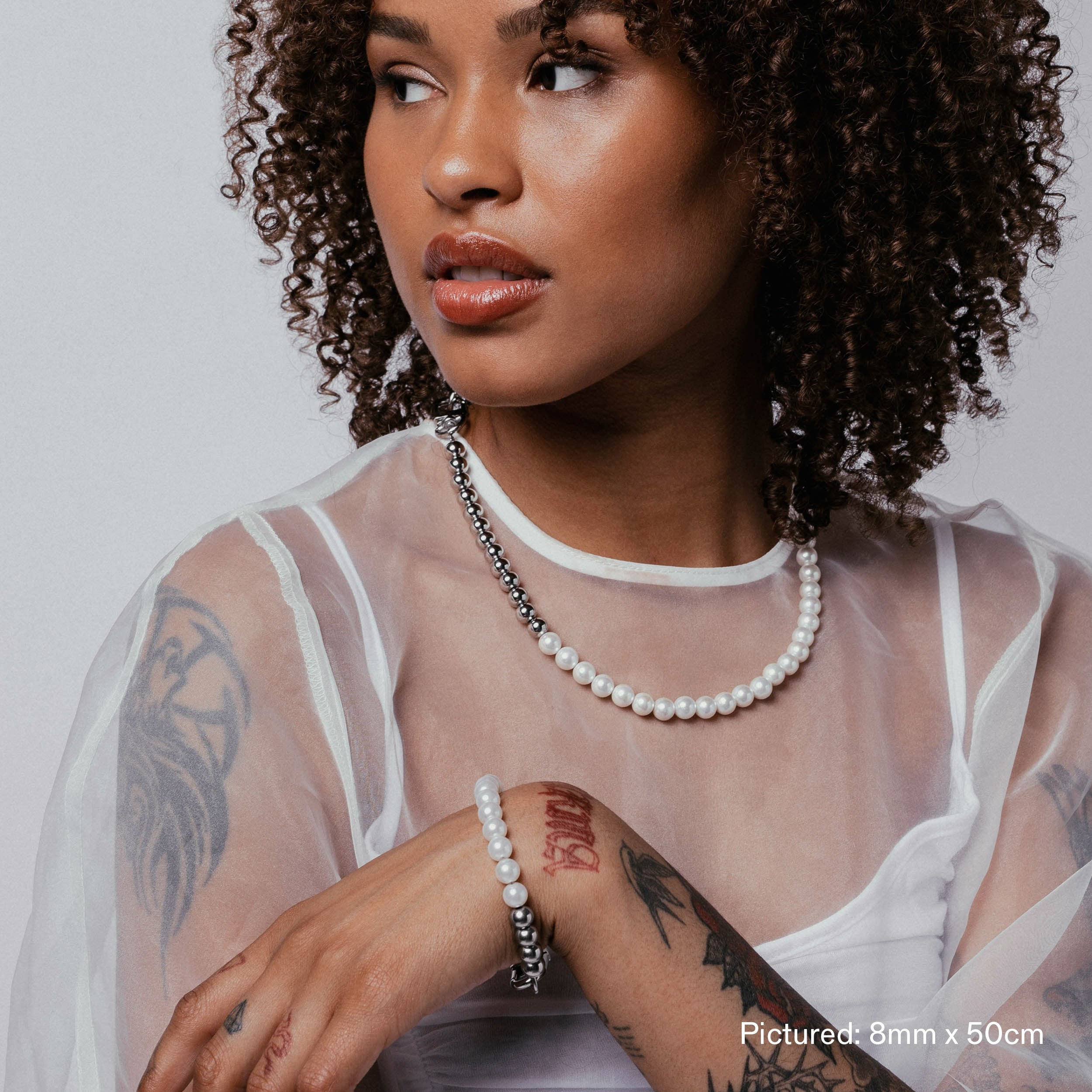 Materials: Stainless Steel. Synthetic Pearls. Available in 45cm (18). 50cm (20) and 55cm (22) lengths.