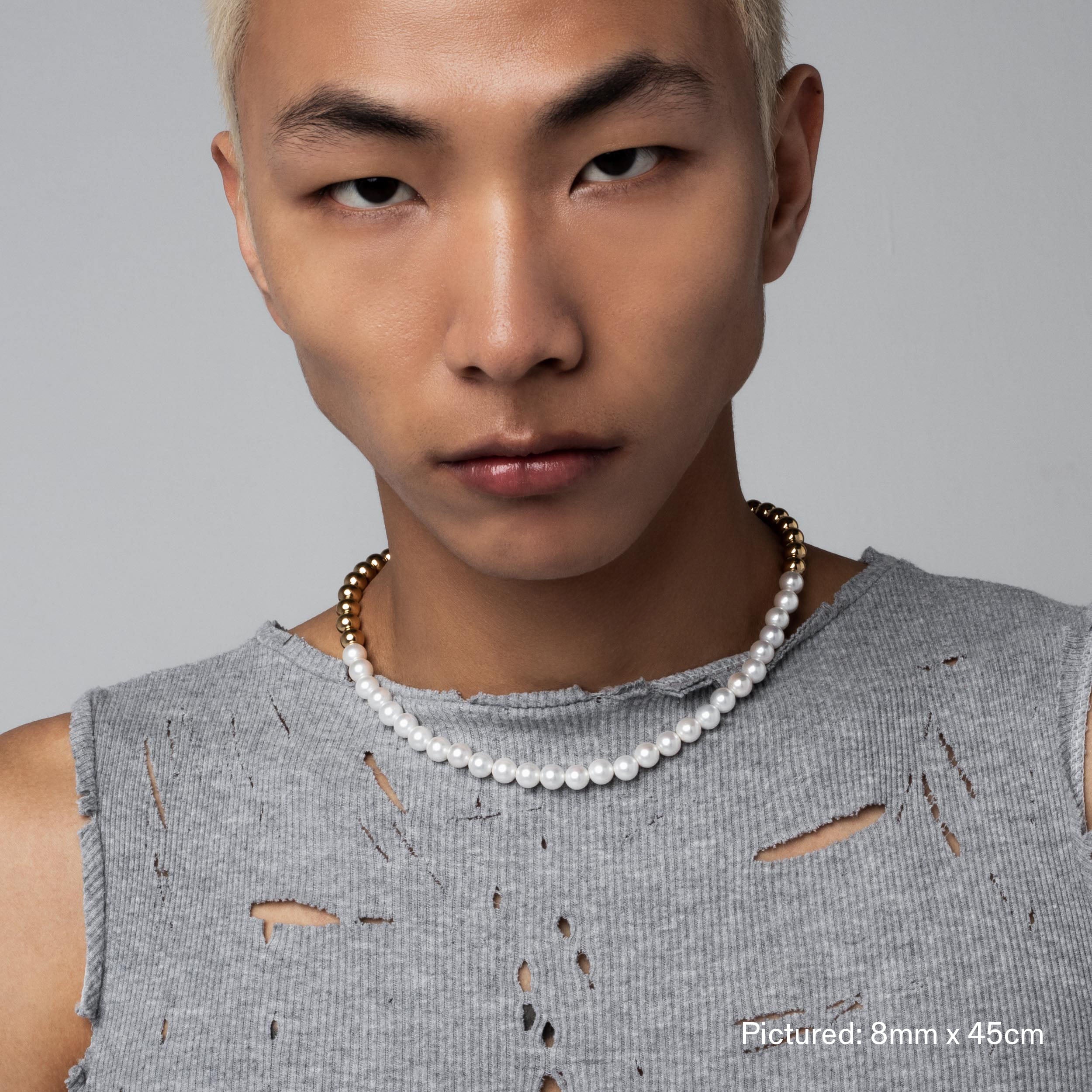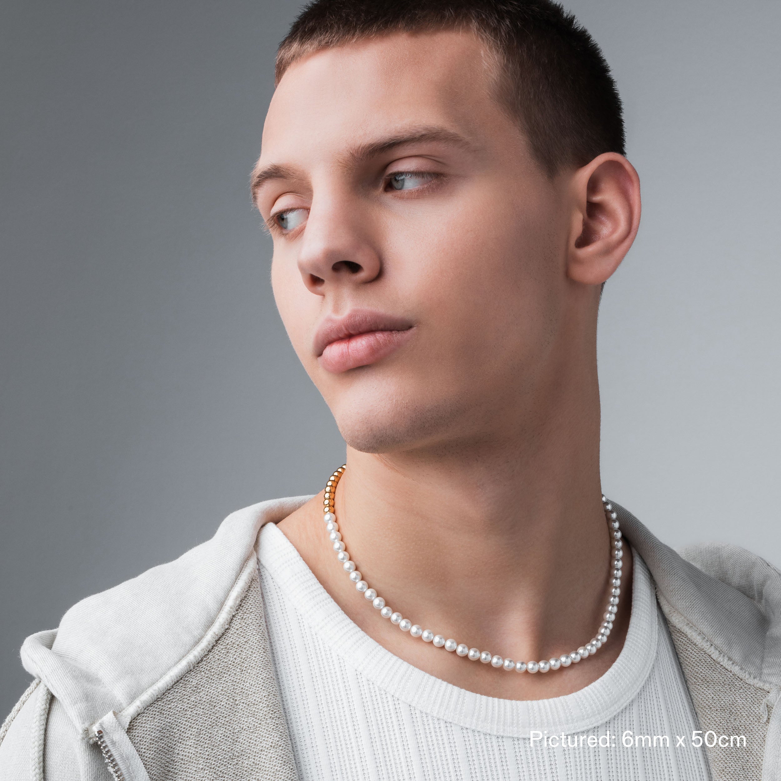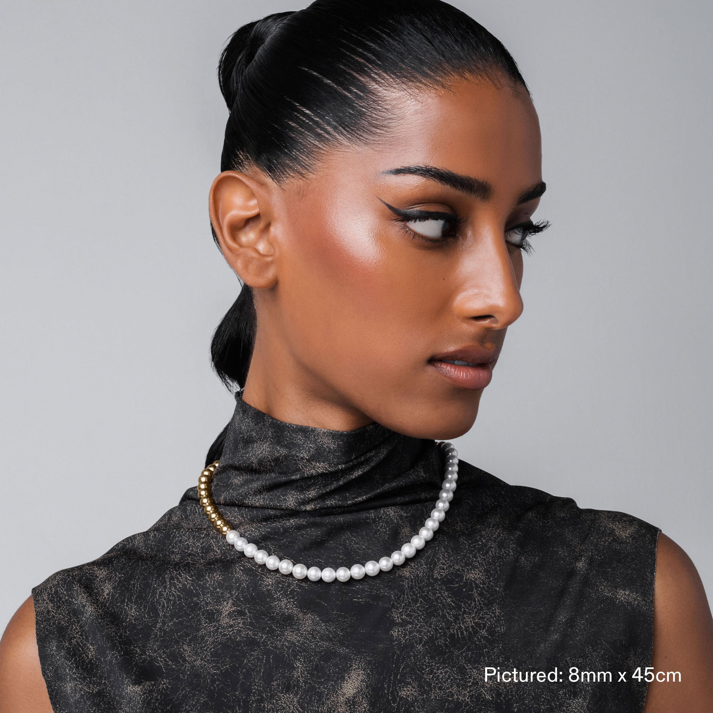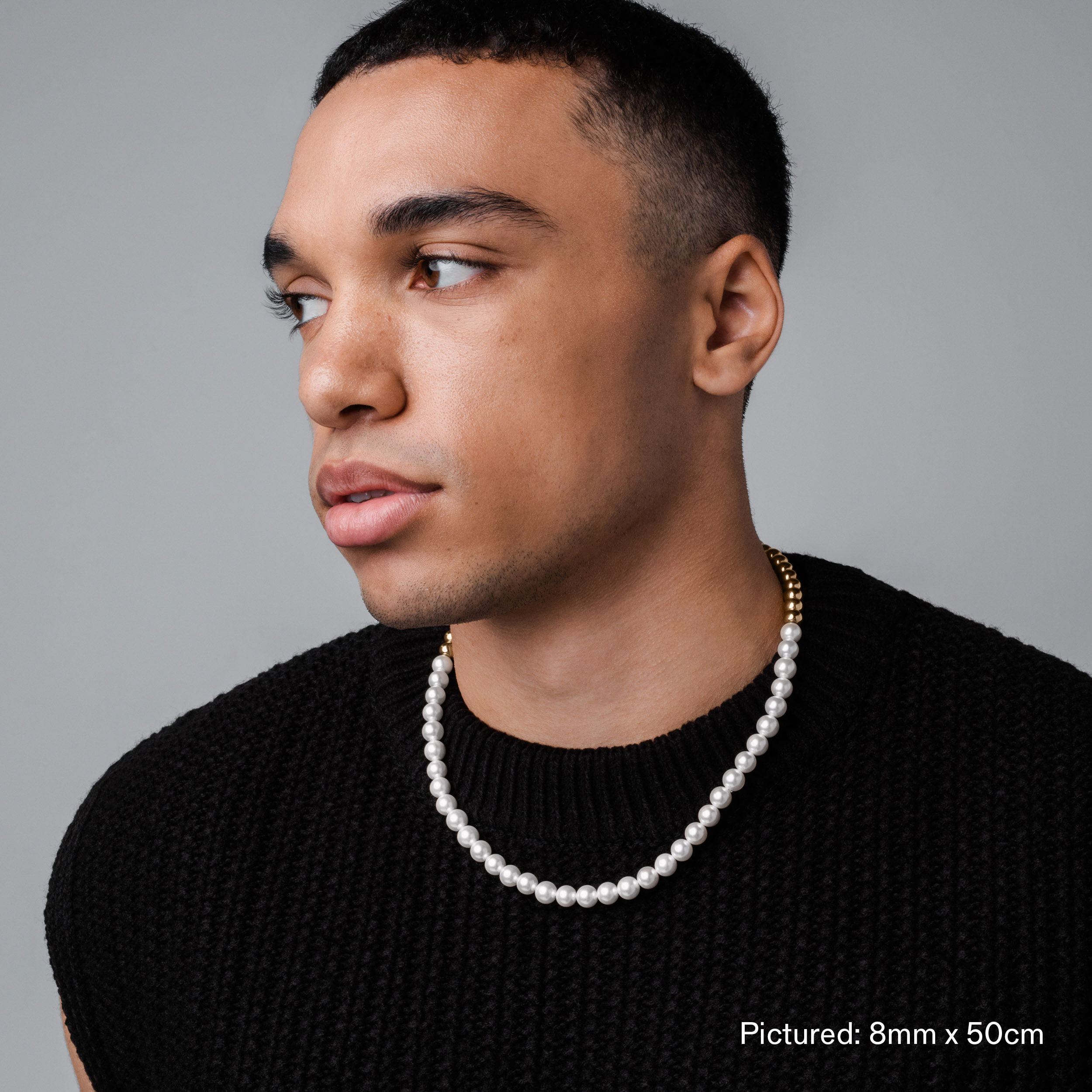 Materials: Stainless Steel. Synthetic Pearls. Available in 45cm (18). 50cm (20) and 55cm (22) lengths.
