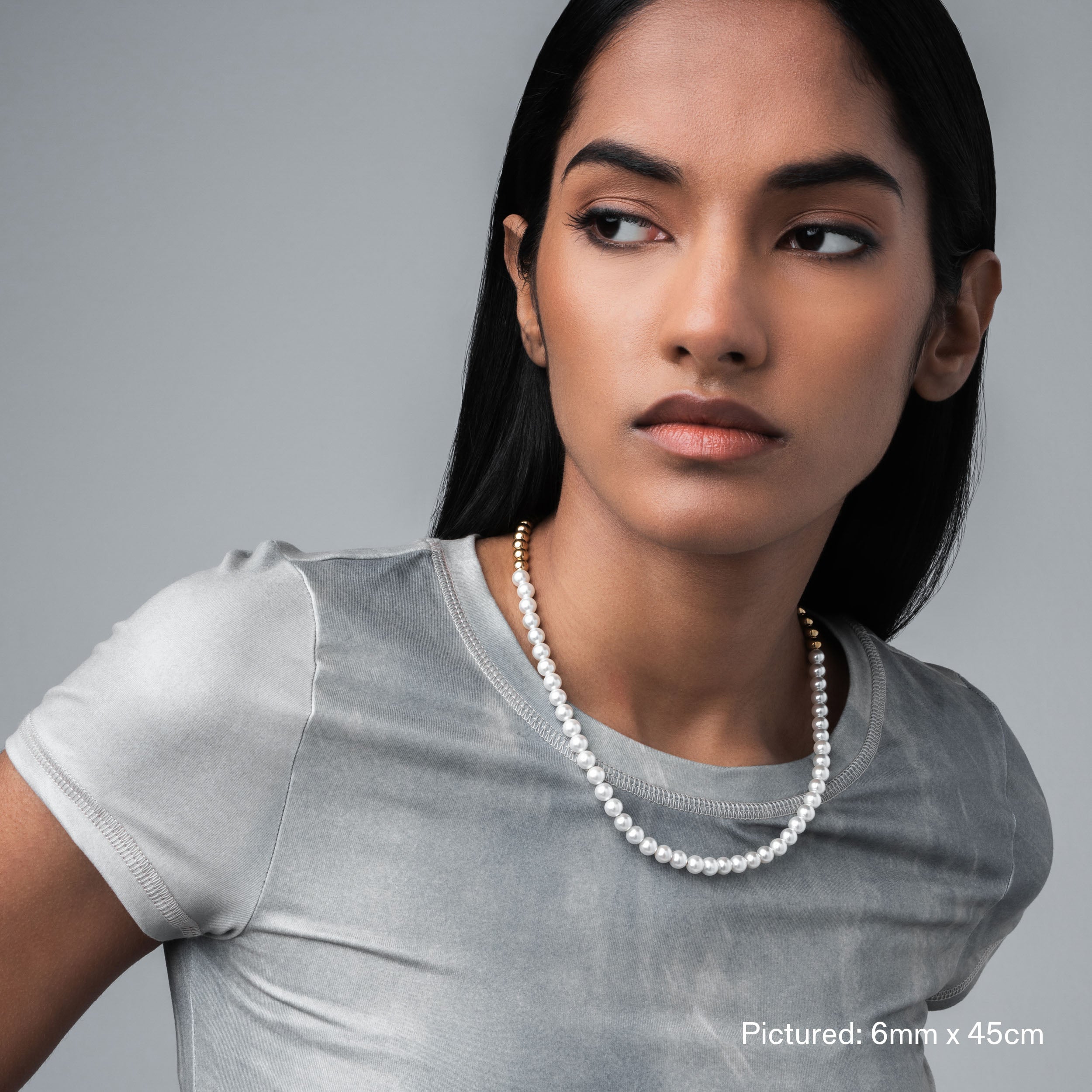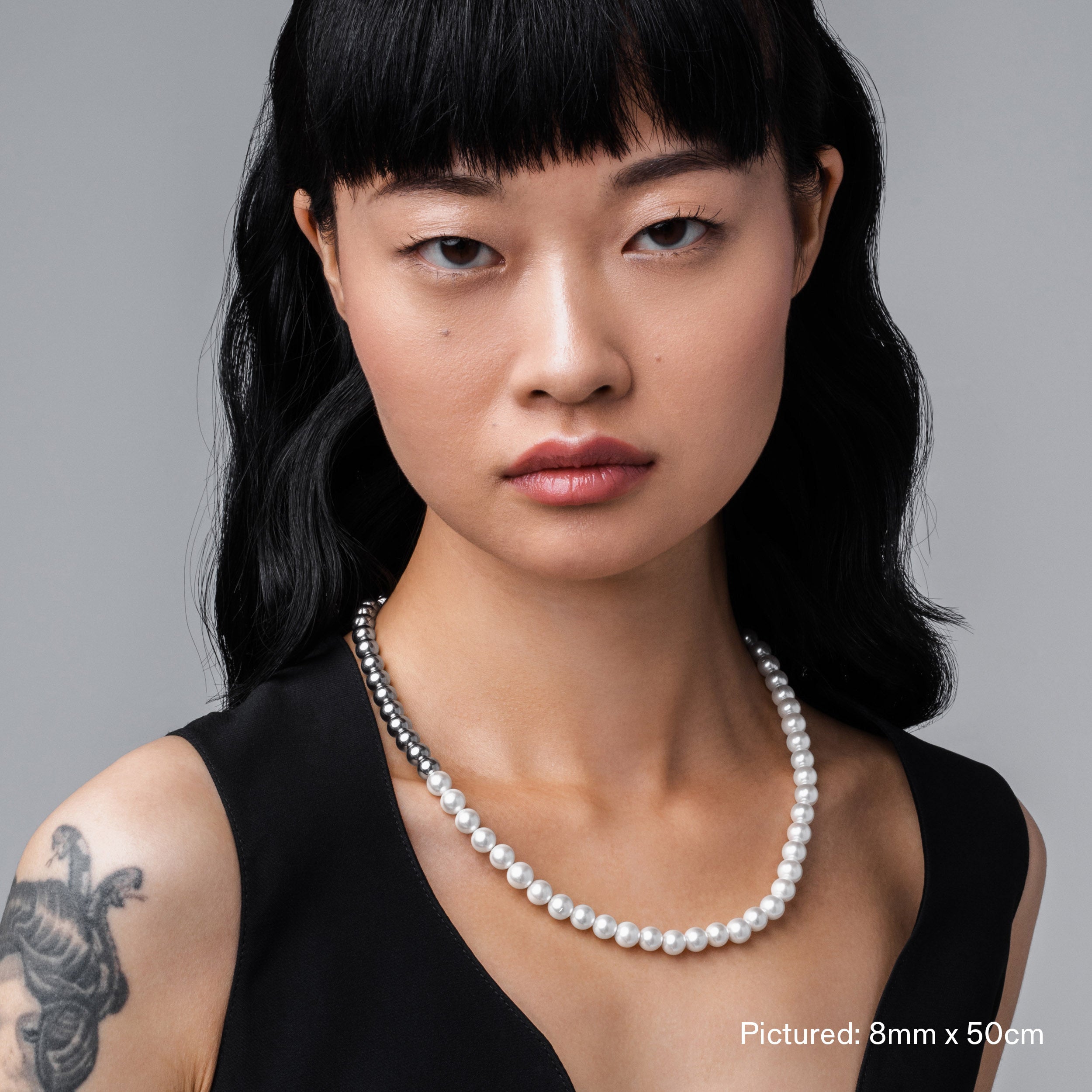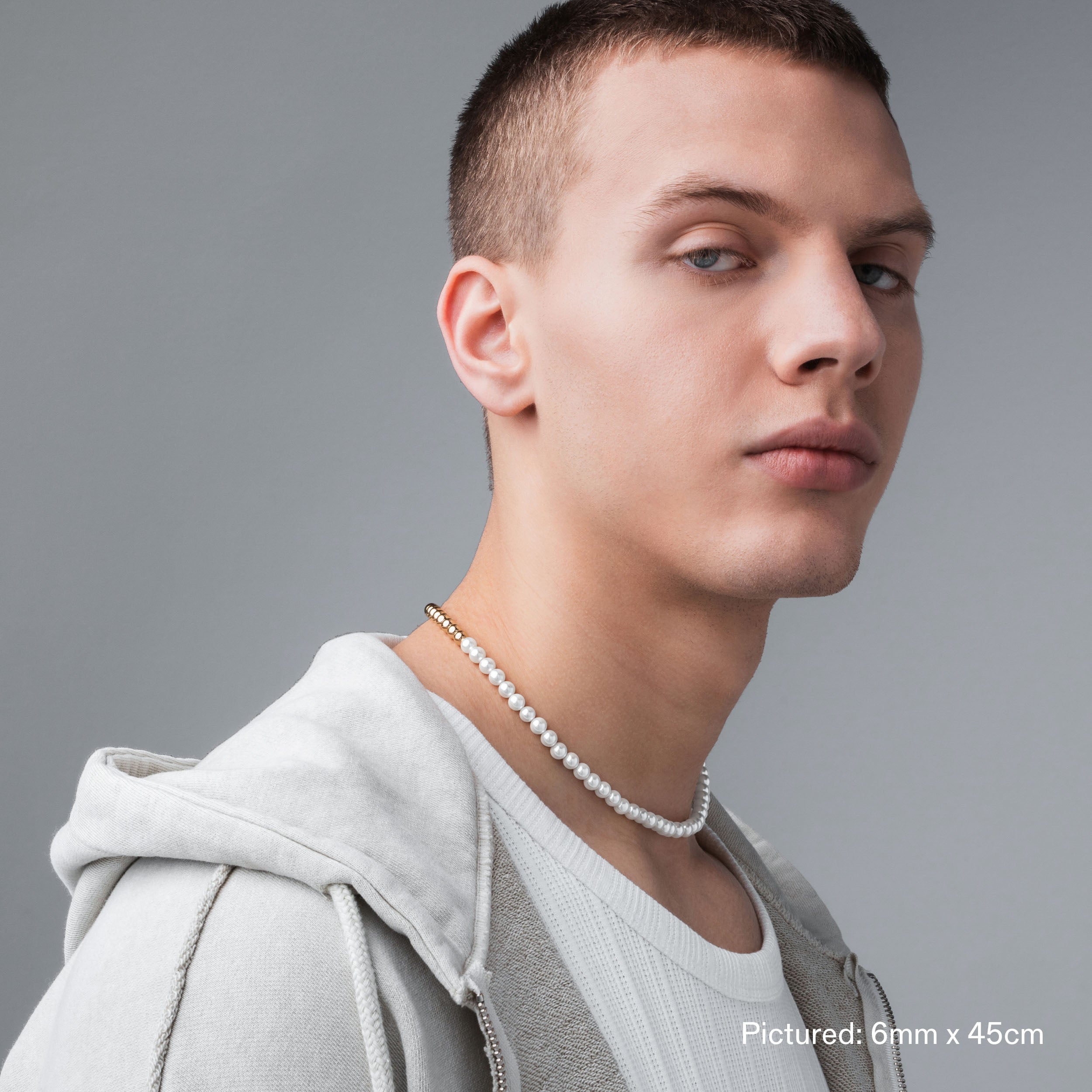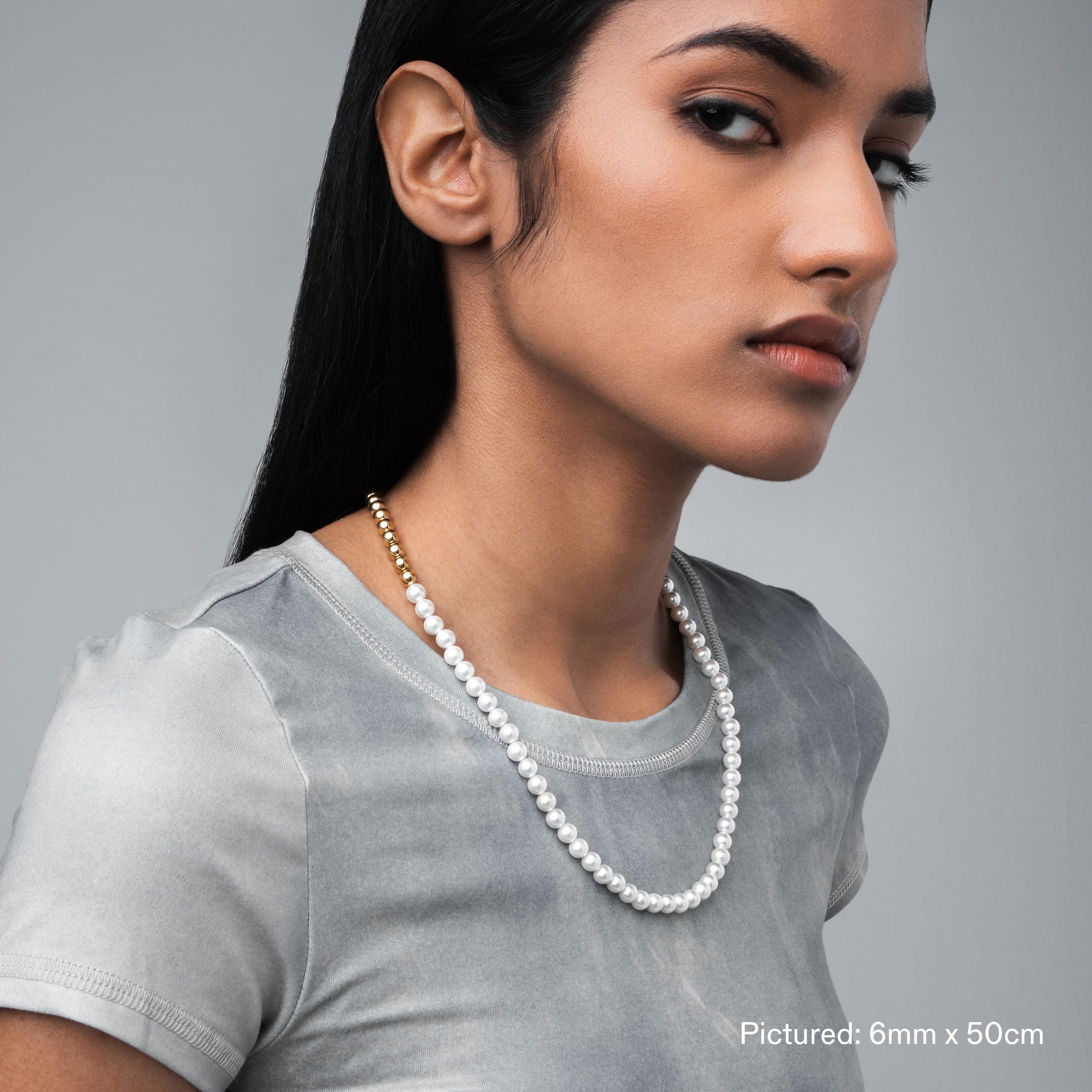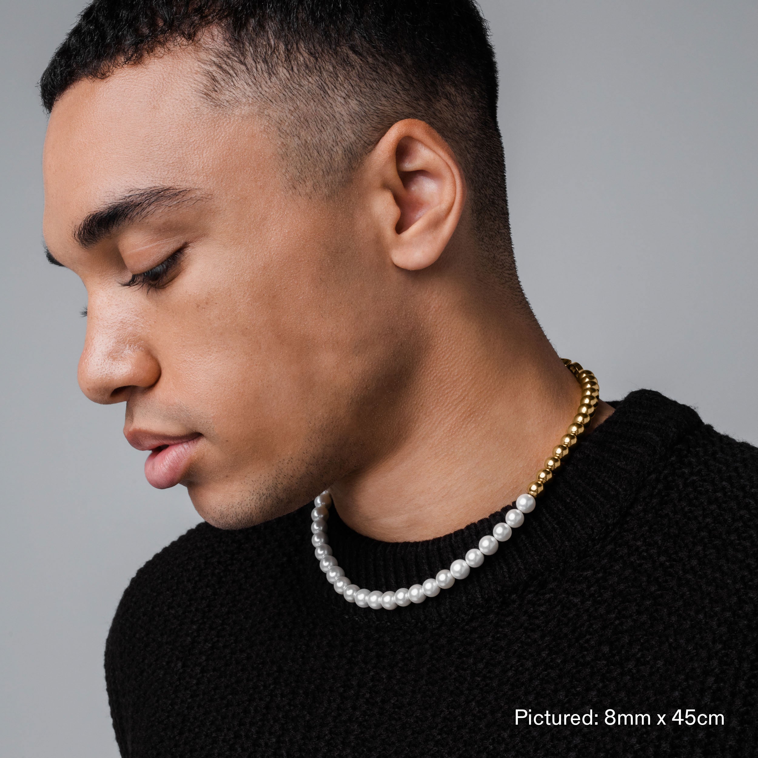 Materials: Stainless Steel. Synthetic Pearls. Available in 45cm (18). 50cm (20) and 55cm (22) lengths.