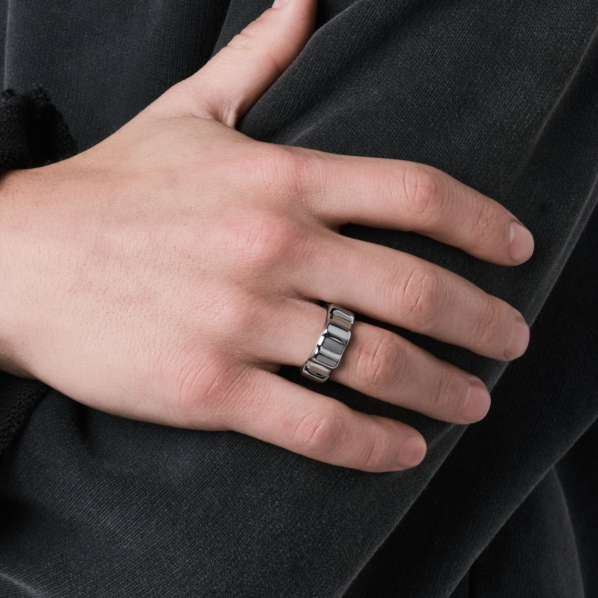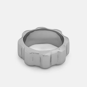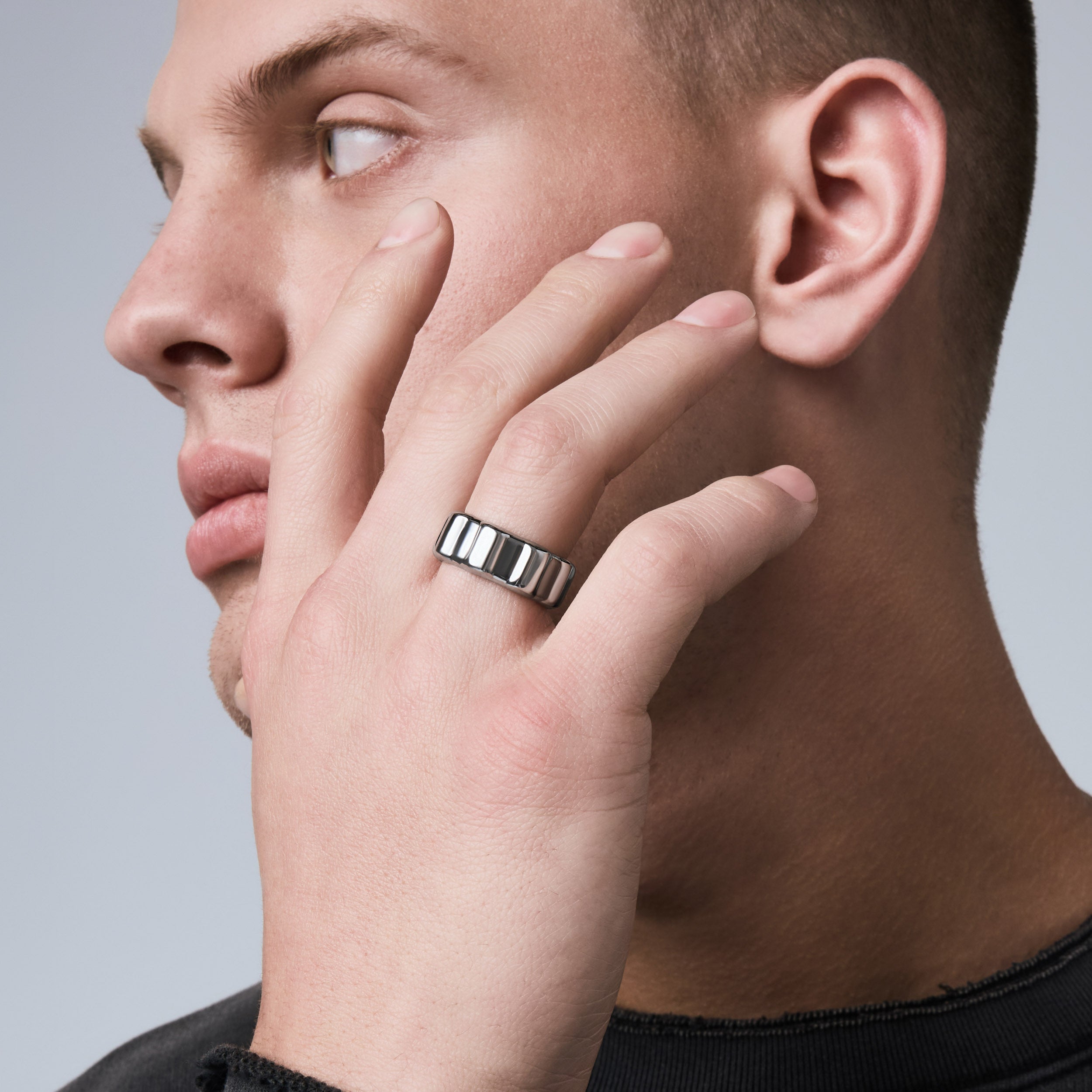 The Bevel is defined by its perimeter engineered with a contour that mimics the profile of a torx bolt head. it’s a mechanical geometry that reconfigures the standard ring silhouette. Designed as a standalone piece or to interrupt the uniformity of a stack. the Bevel brings a tooling aesthetic into personal styling.