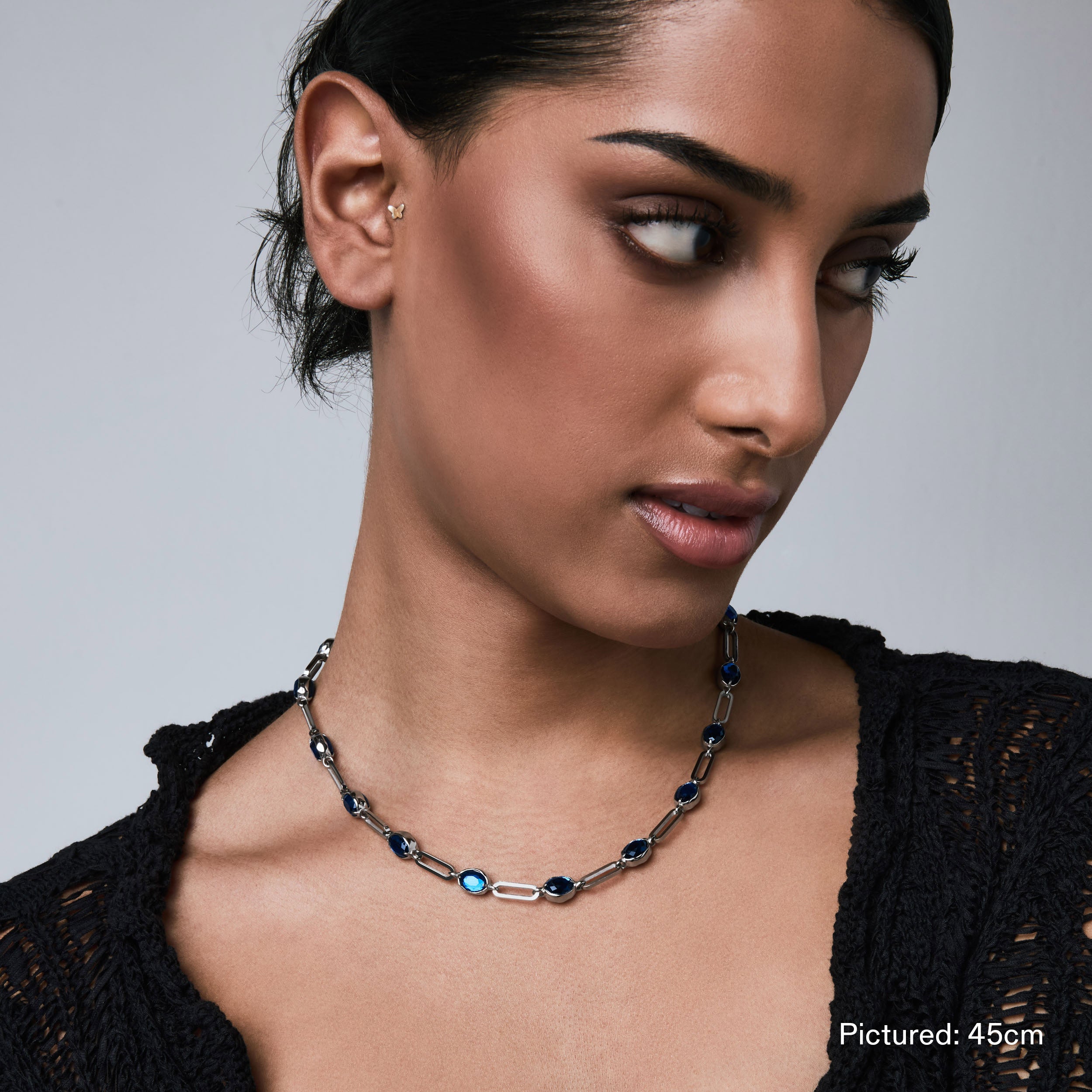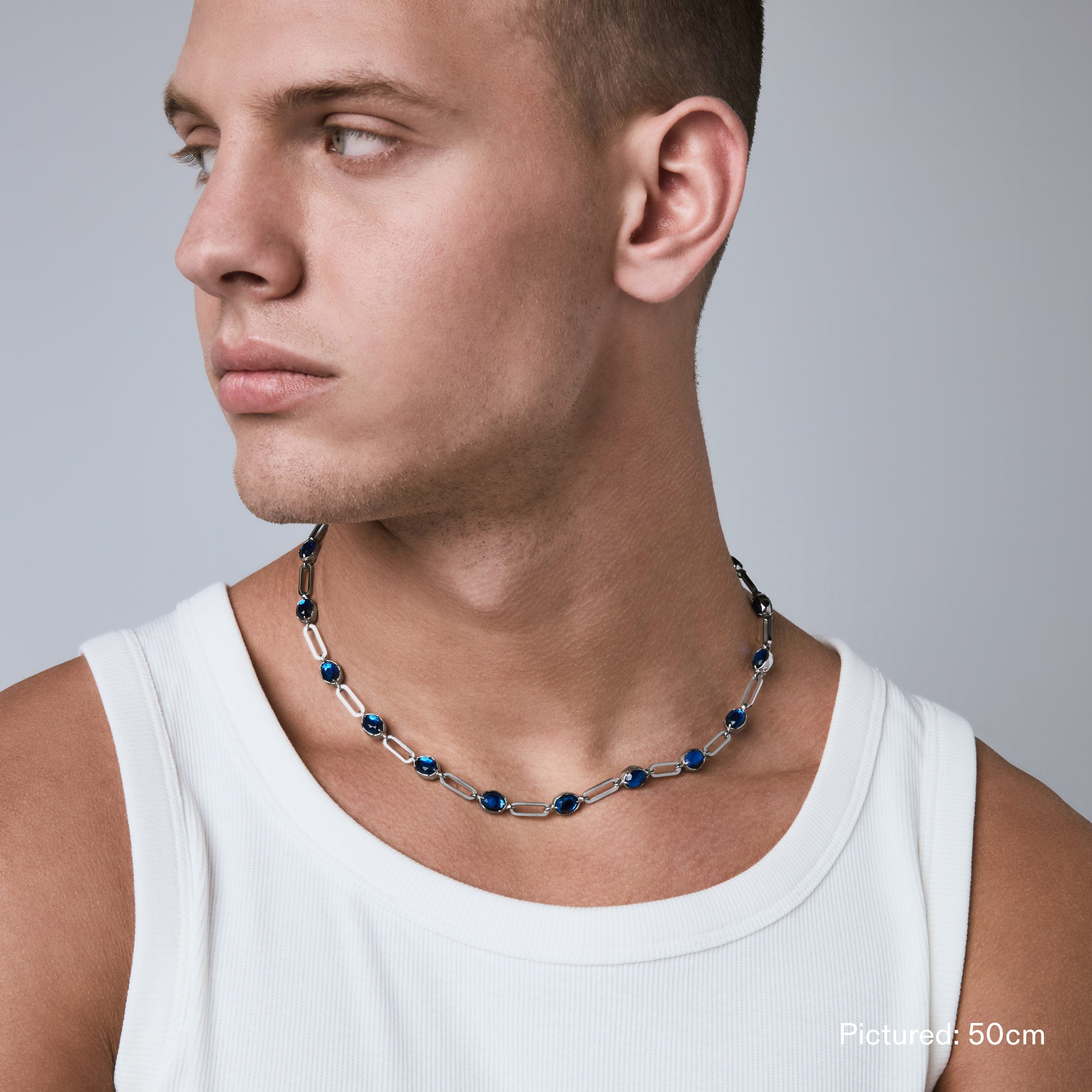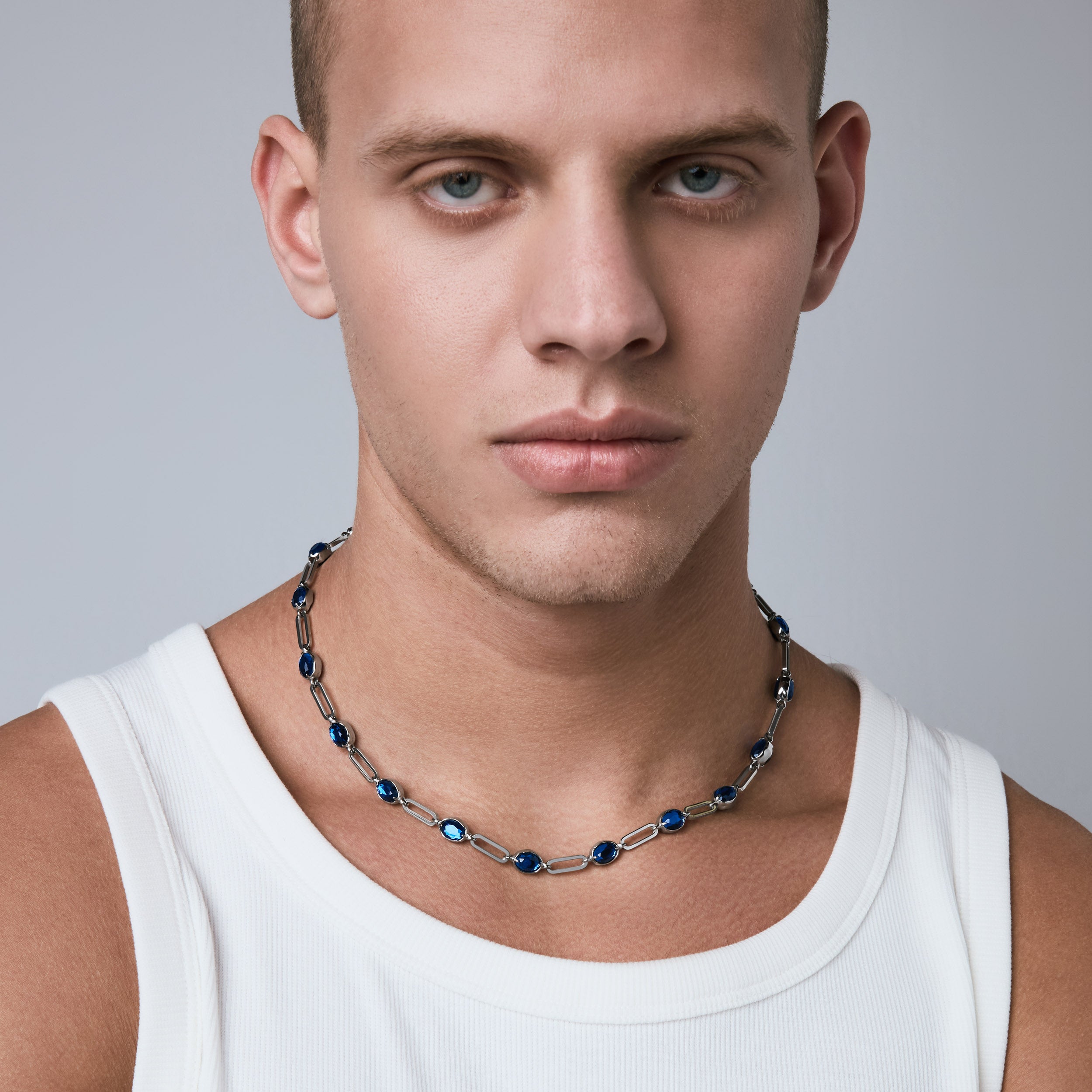 Available in cobalt blue or deep black. the crystals are secured by a custom casing that showcases the stones on both sides. Worn on its own. the Cadence makes a clear statement. Layer it with other chains to add movement and break up uniform stacks.