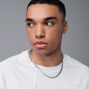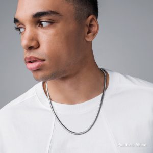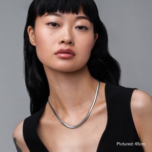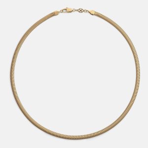 The Coil is constructed from a tightly woven herringbone chain. giving it a smooth appearance and fluid sense of movement. Comes in two lengths and finishes with our signature Glyph logo tag. Can be worn on its own or layered with other chains and pendants.