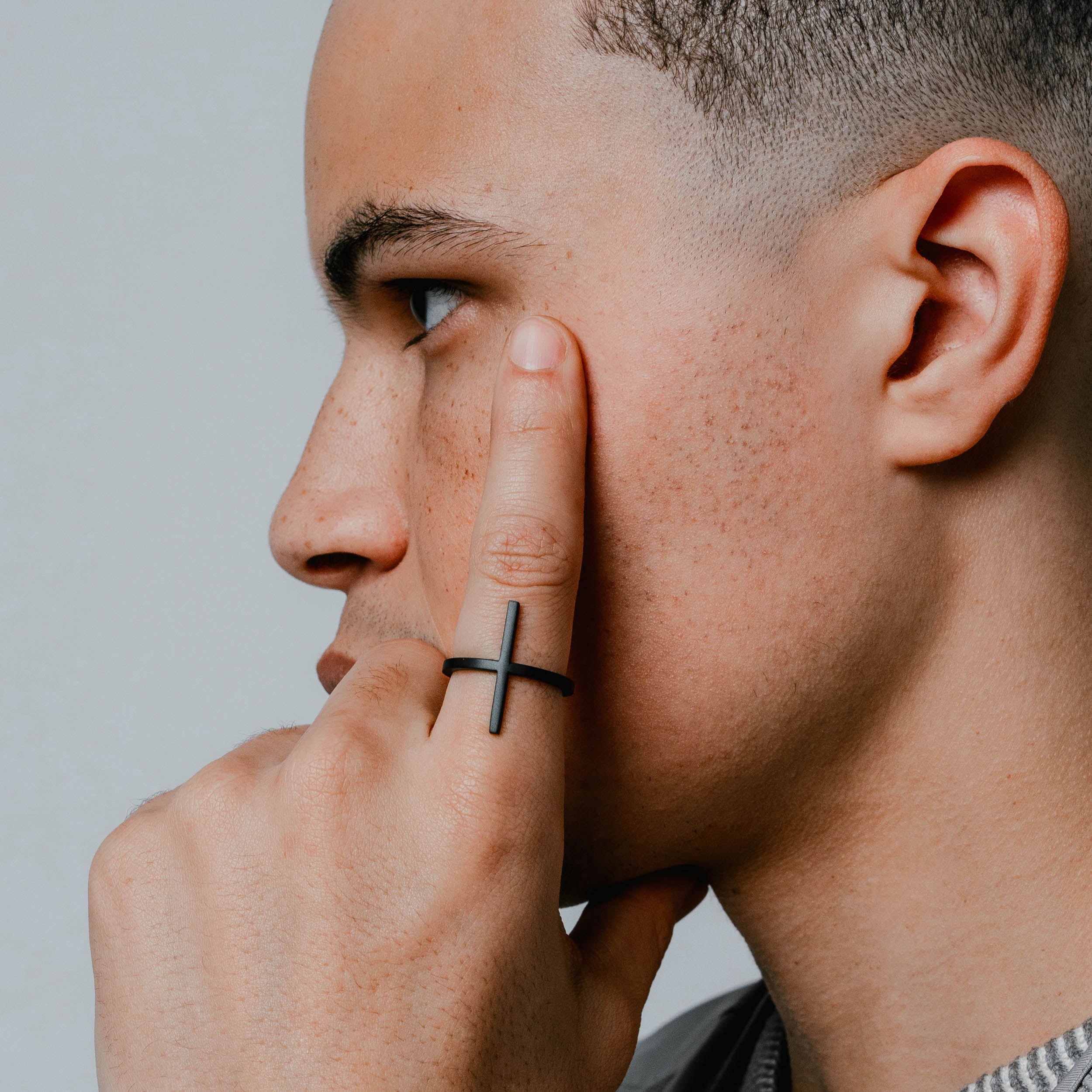 Inspired by architectural crossbeams. this low-profile ring is a structural piece designed for your pinky or index finger.