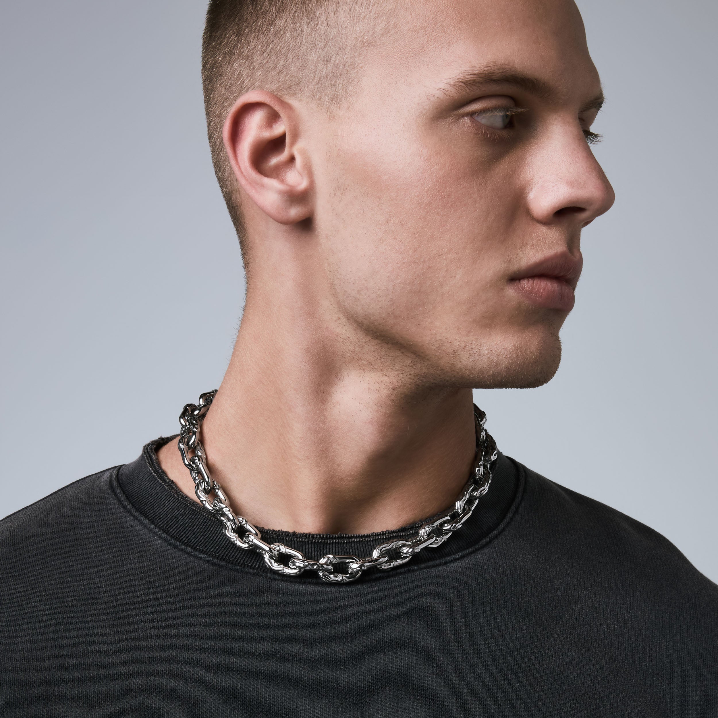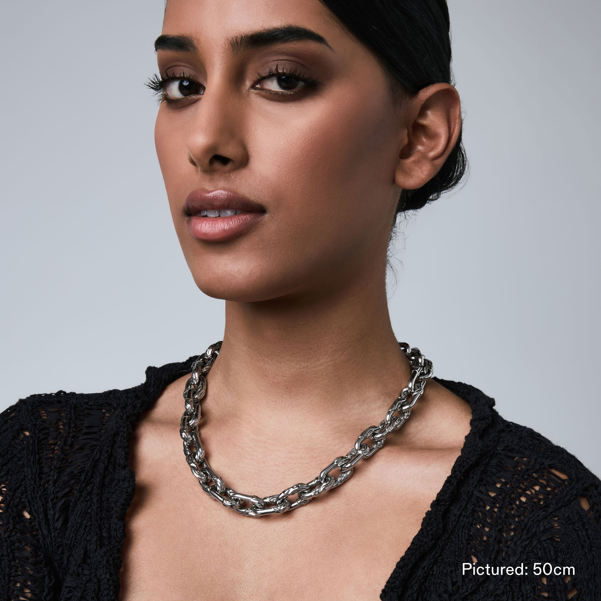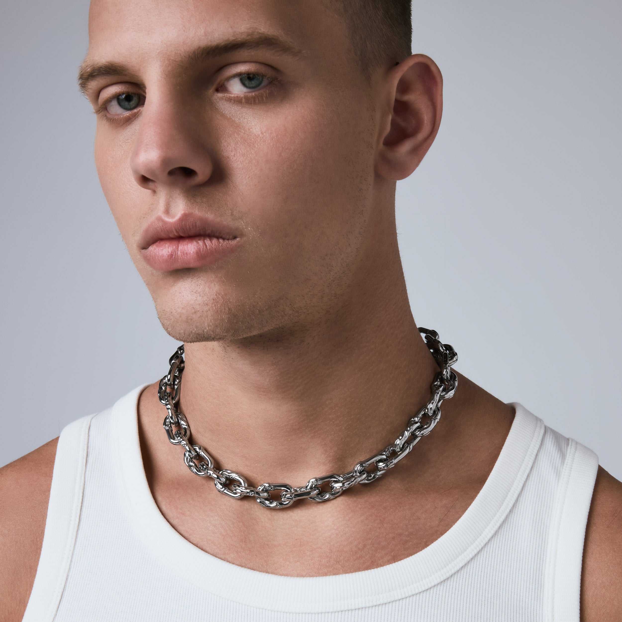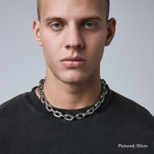 Materials: Stainless Steel. Available in 45cm (18) or 50cm (20) lengths. Chain measures 14mm thick.