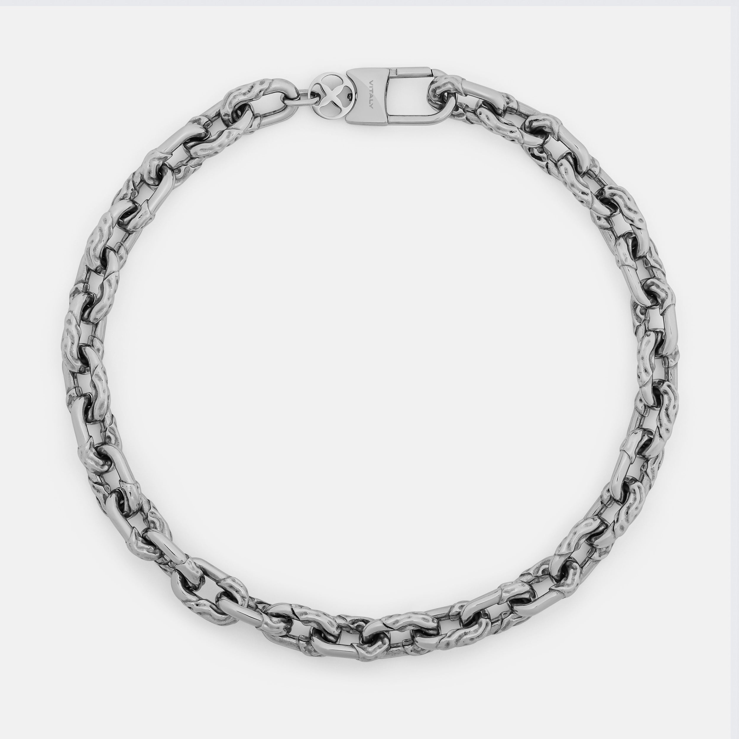 Secured with our signature Glyph clasp. the Forge reads as an industrial artifact controlled. but only just. Wear it solo to highlight its weight. or stack with slimmer pieces to exaggerate the tension.