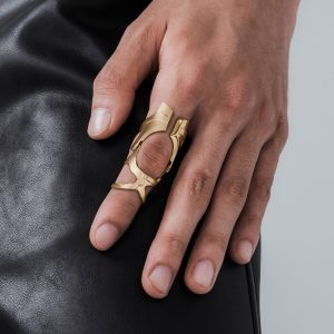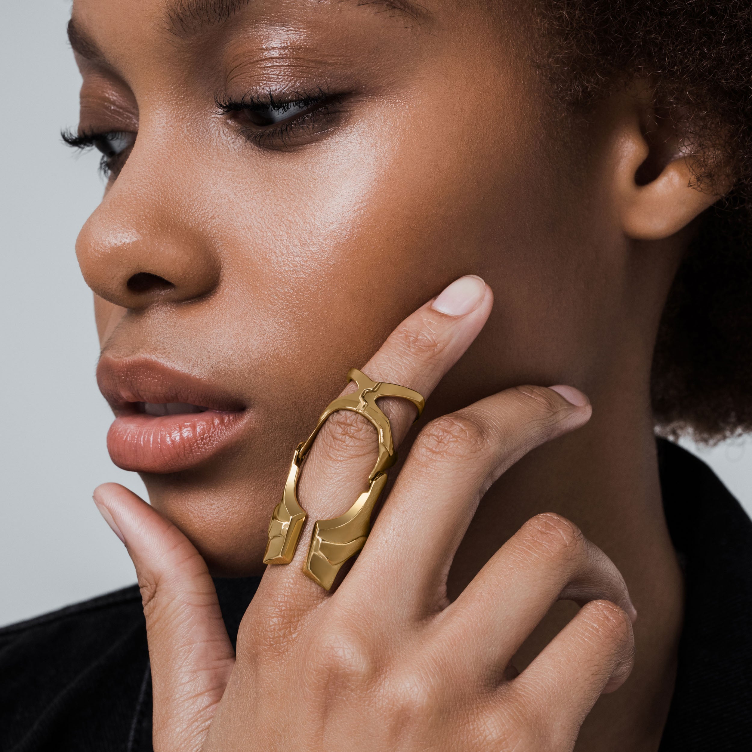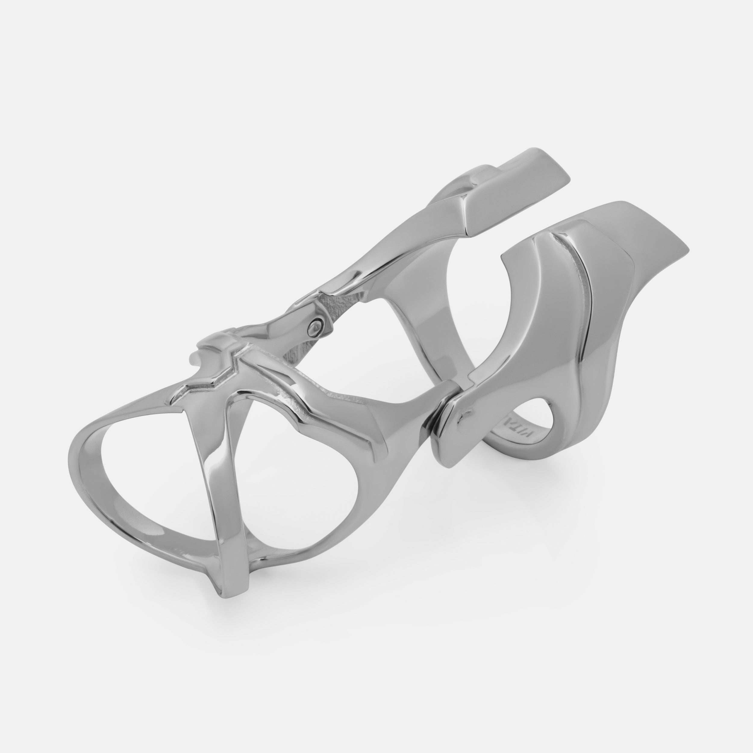 Designed to resemble a bionic enhancement. the Fragment is marked by detailed junctions that run along the exterior of its complex structure. With a hinging mechanism at the knuckle. the Fragment seamlessly mirrors the movements of your finger.