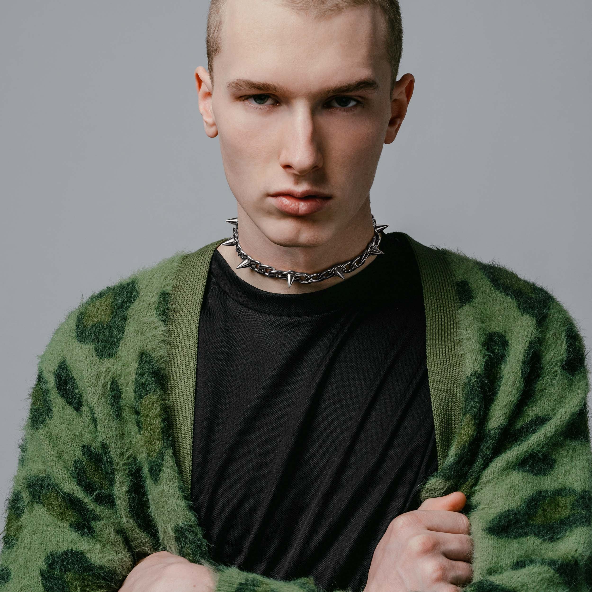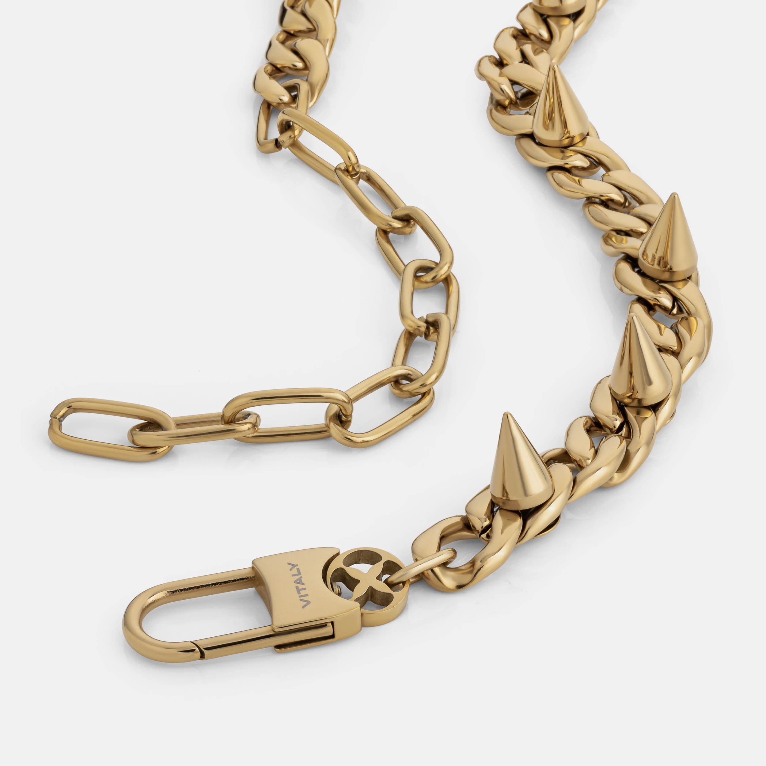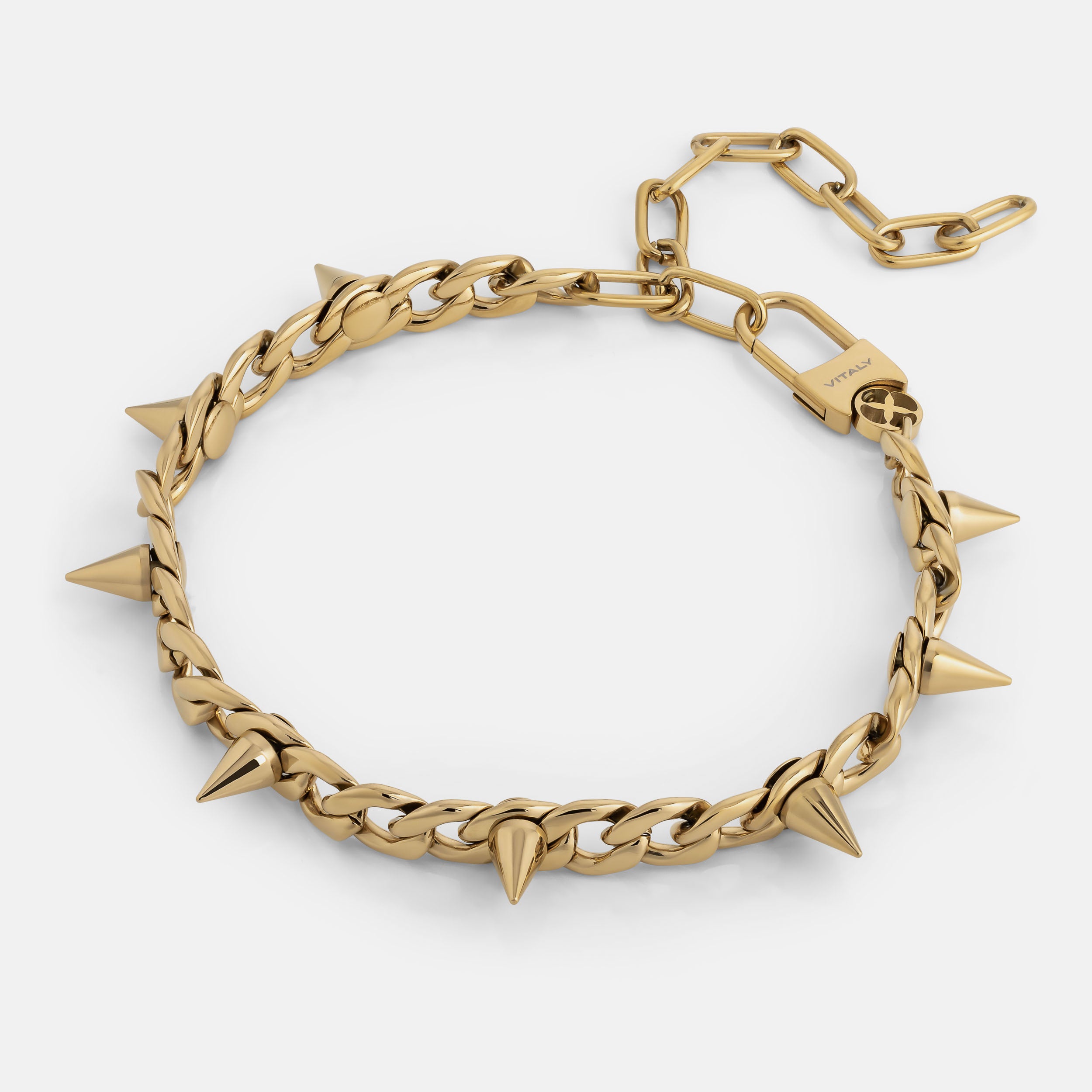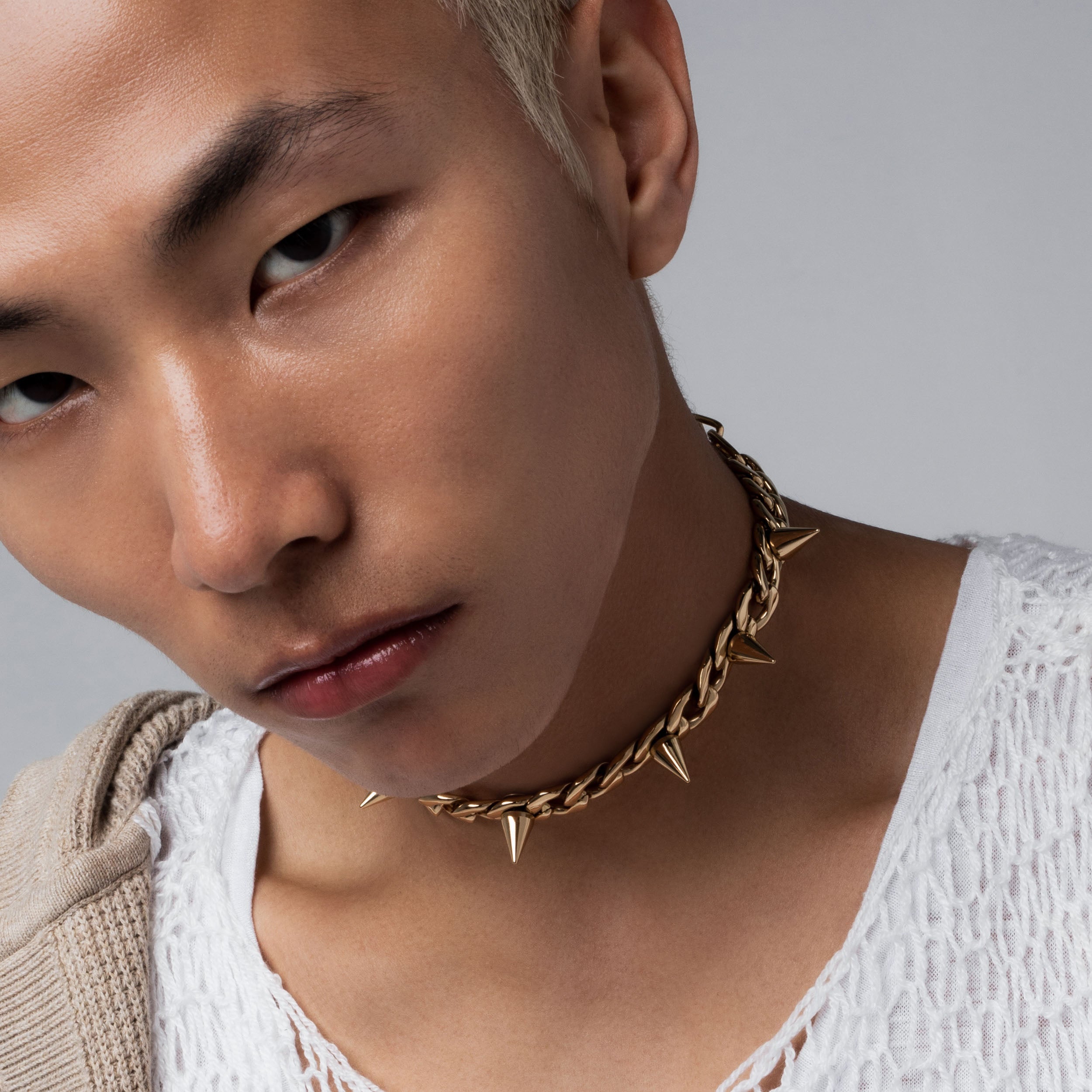 Spiked choker with adjustable sizing chain and signature Glyph carabiner clasp.