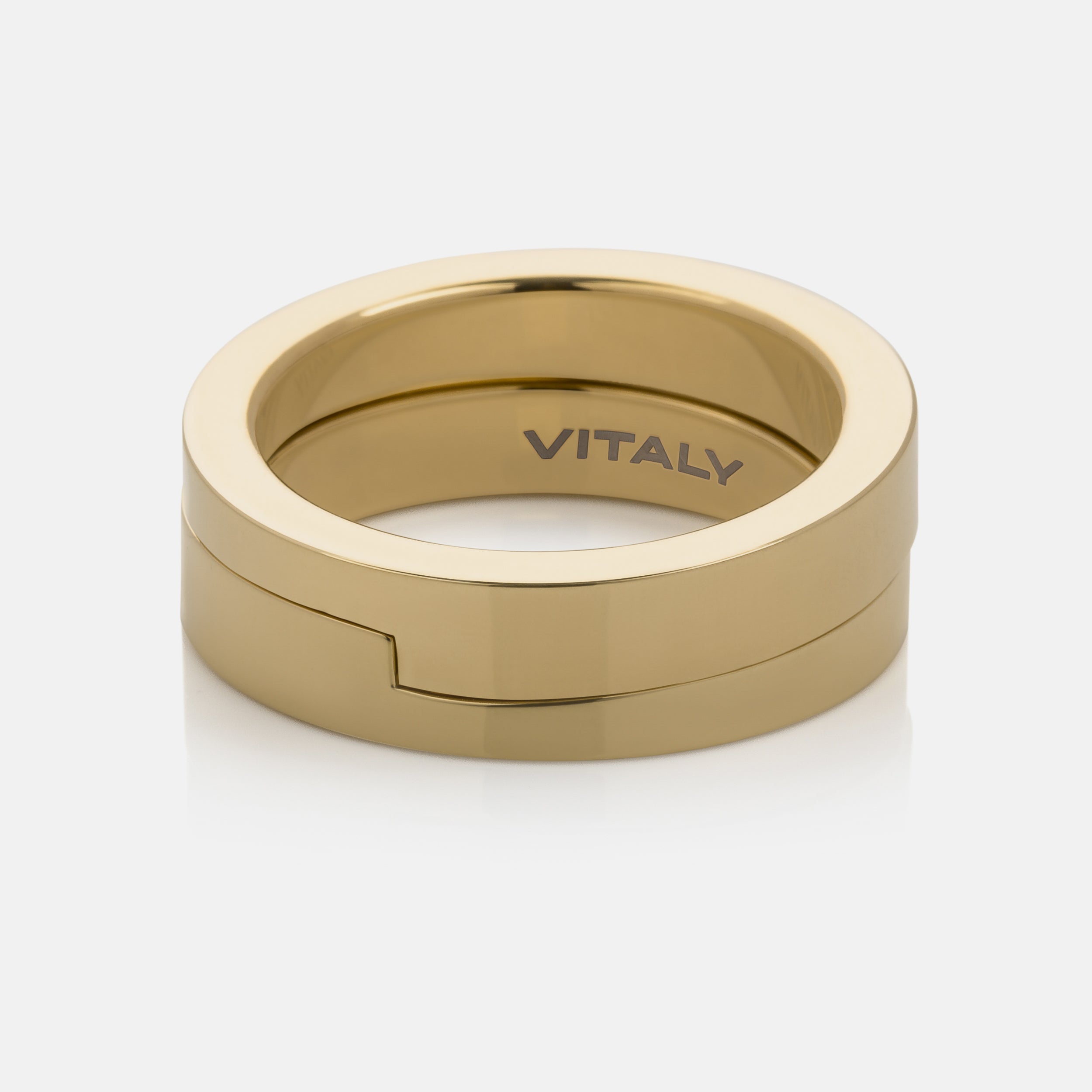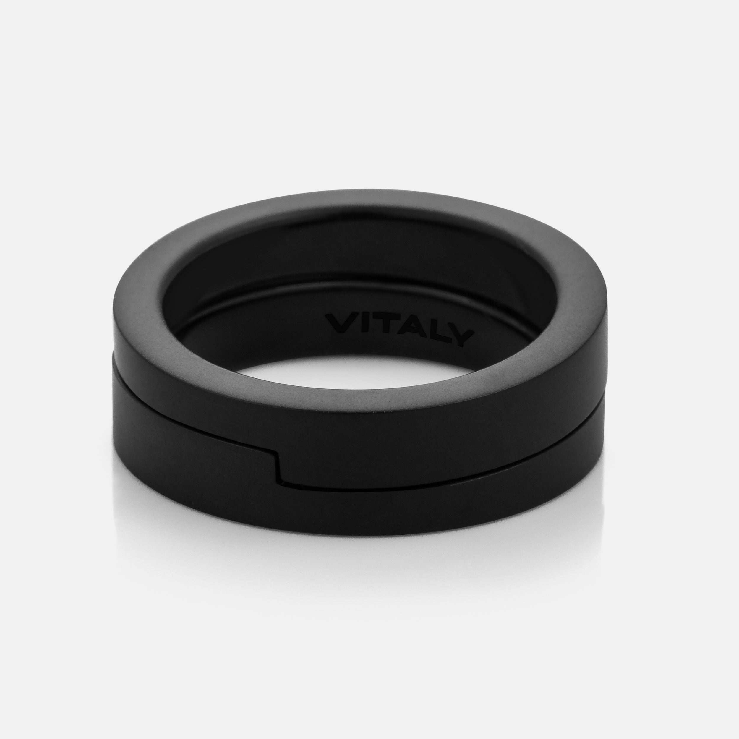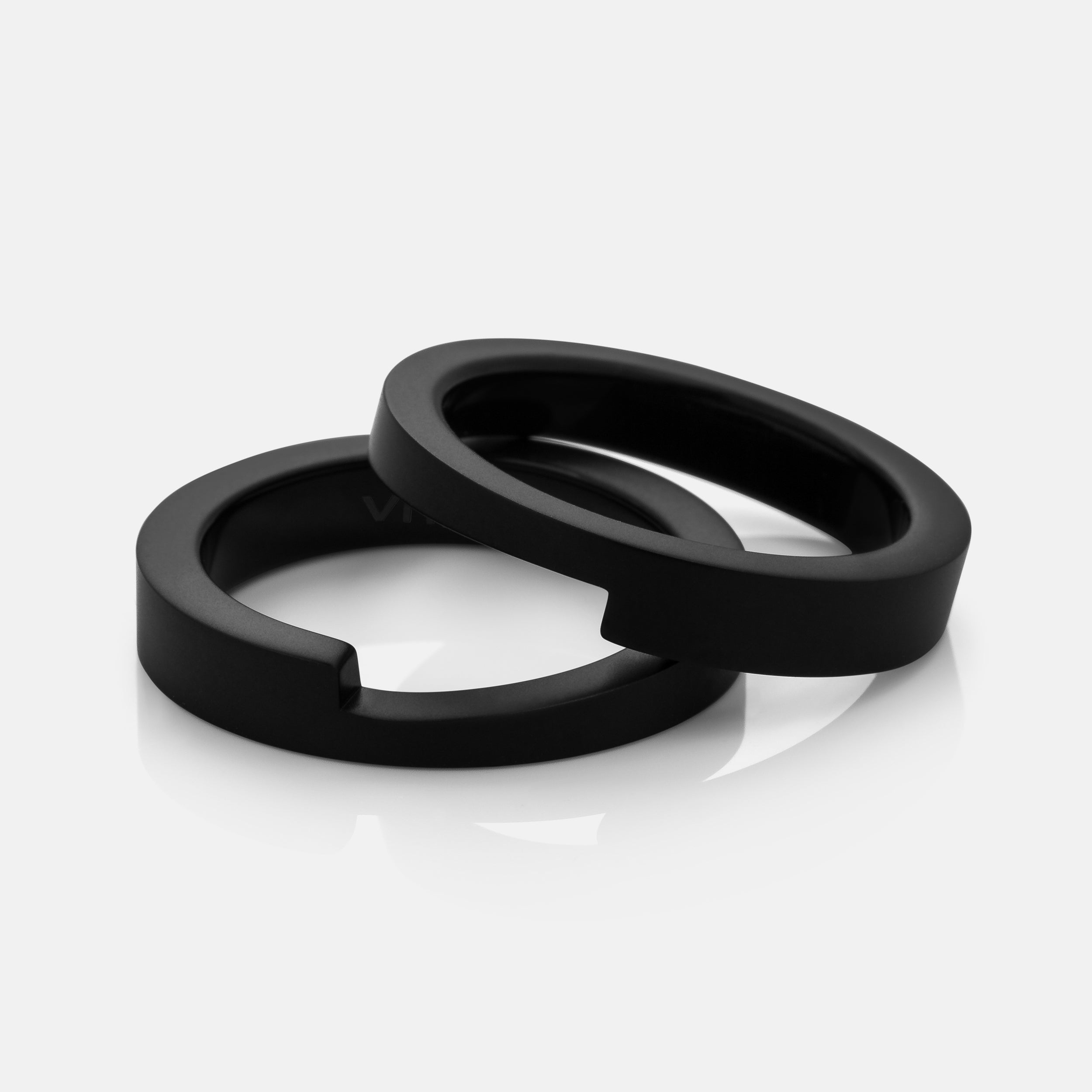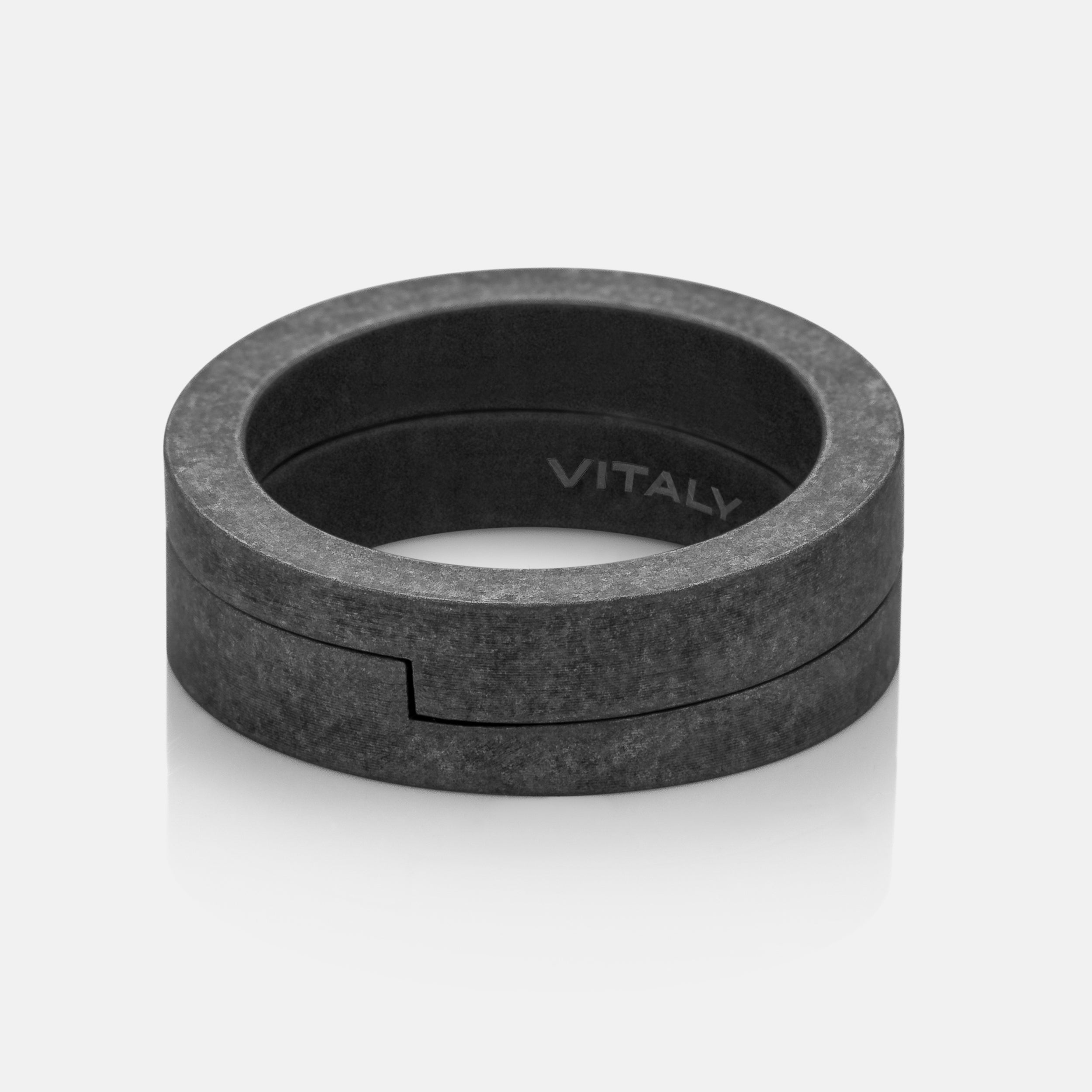 The Gridlok features two interlocking rings that can be worn flush. pulled apart or back-to-back in order to create multiple looks. Each ring is also substantial enough to be worn individually on separate fingers.