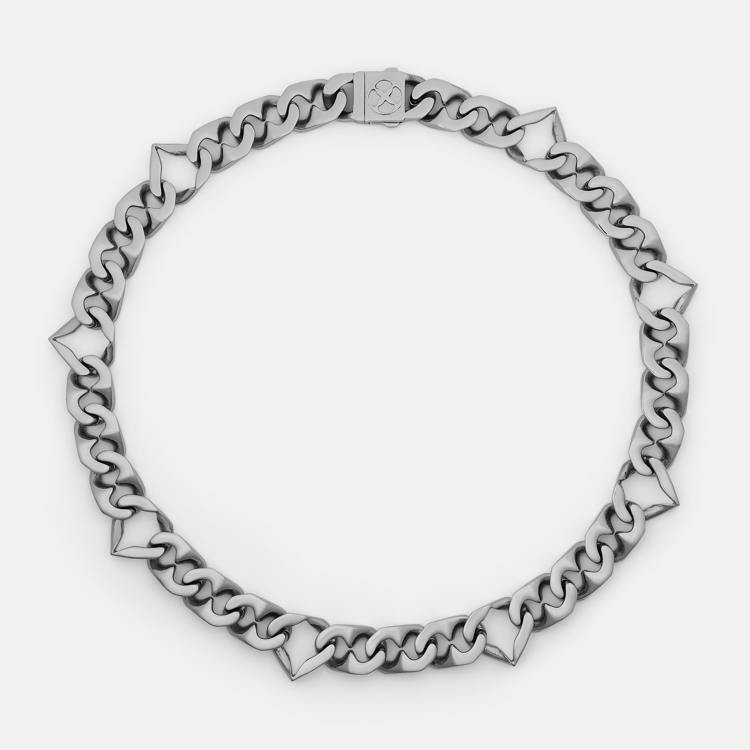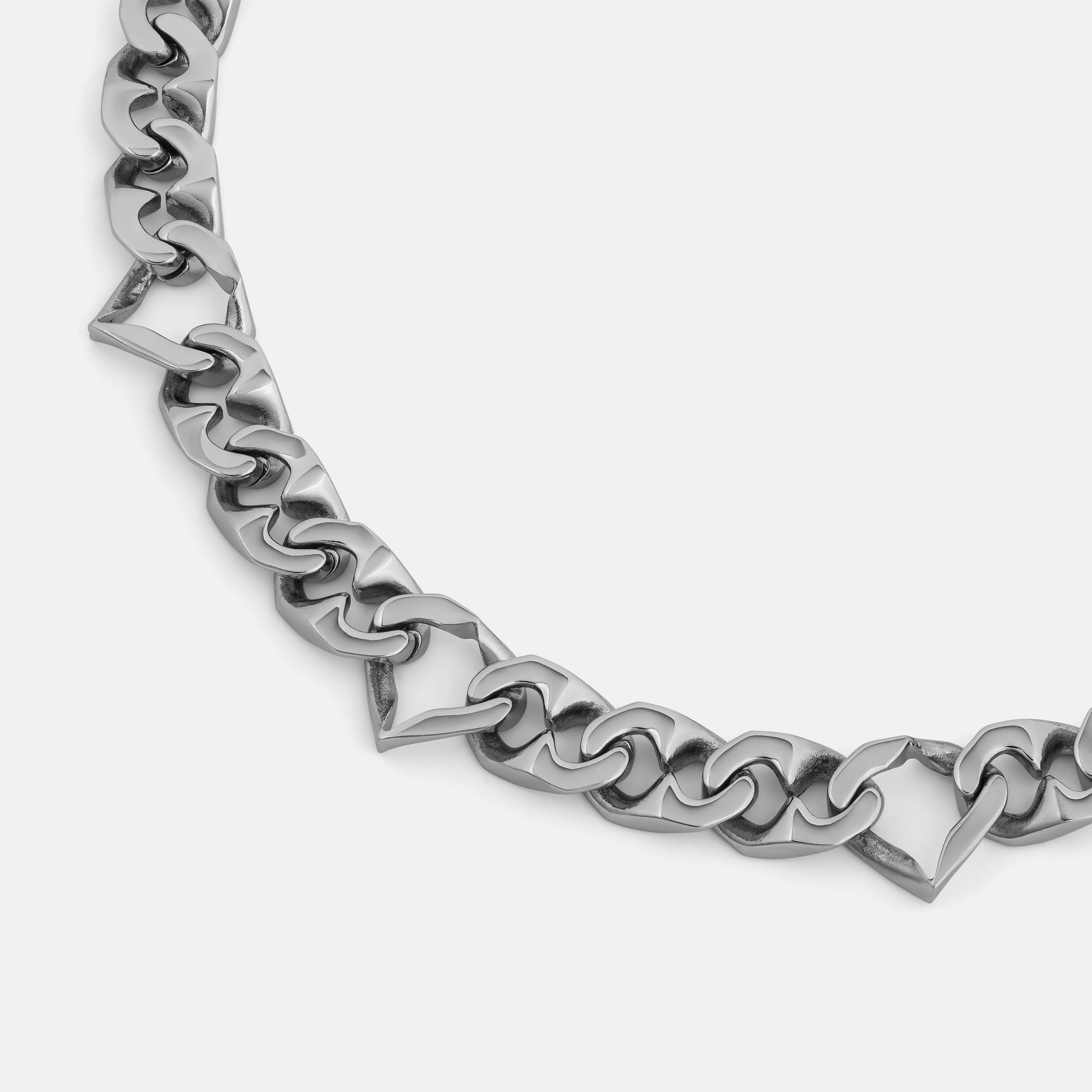 The Ignite is a sharp spin on a standard cuban chain. Composed of custom links that feature a barbed central detail and flame-like points throughout. the design takes on a piercing aesthetic that’s sure to spark attention. Finished with our signature Glyph buckle clasp.