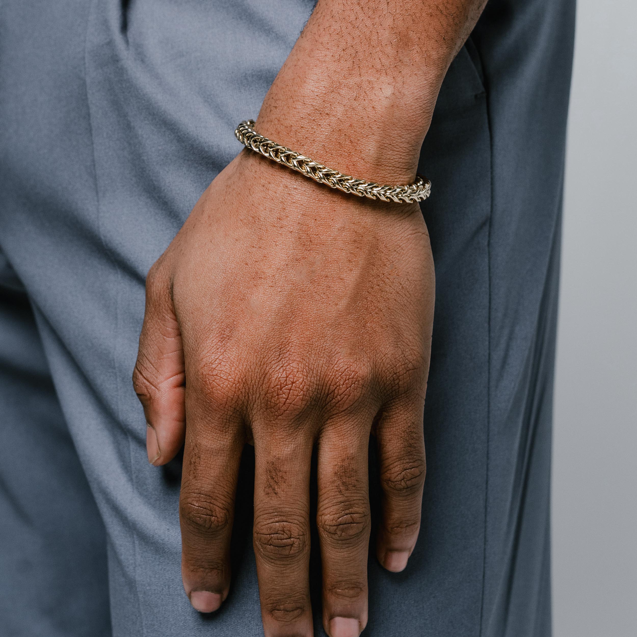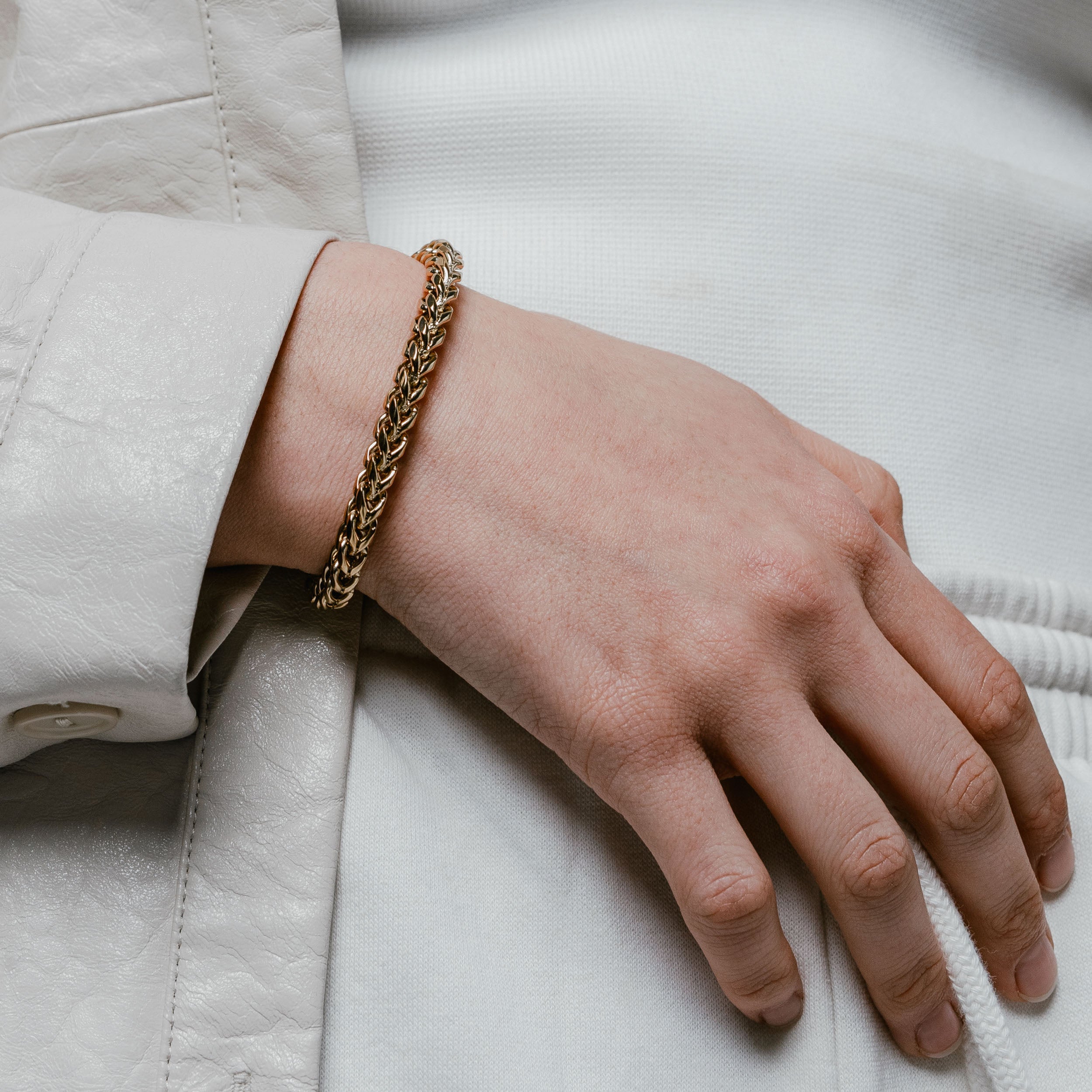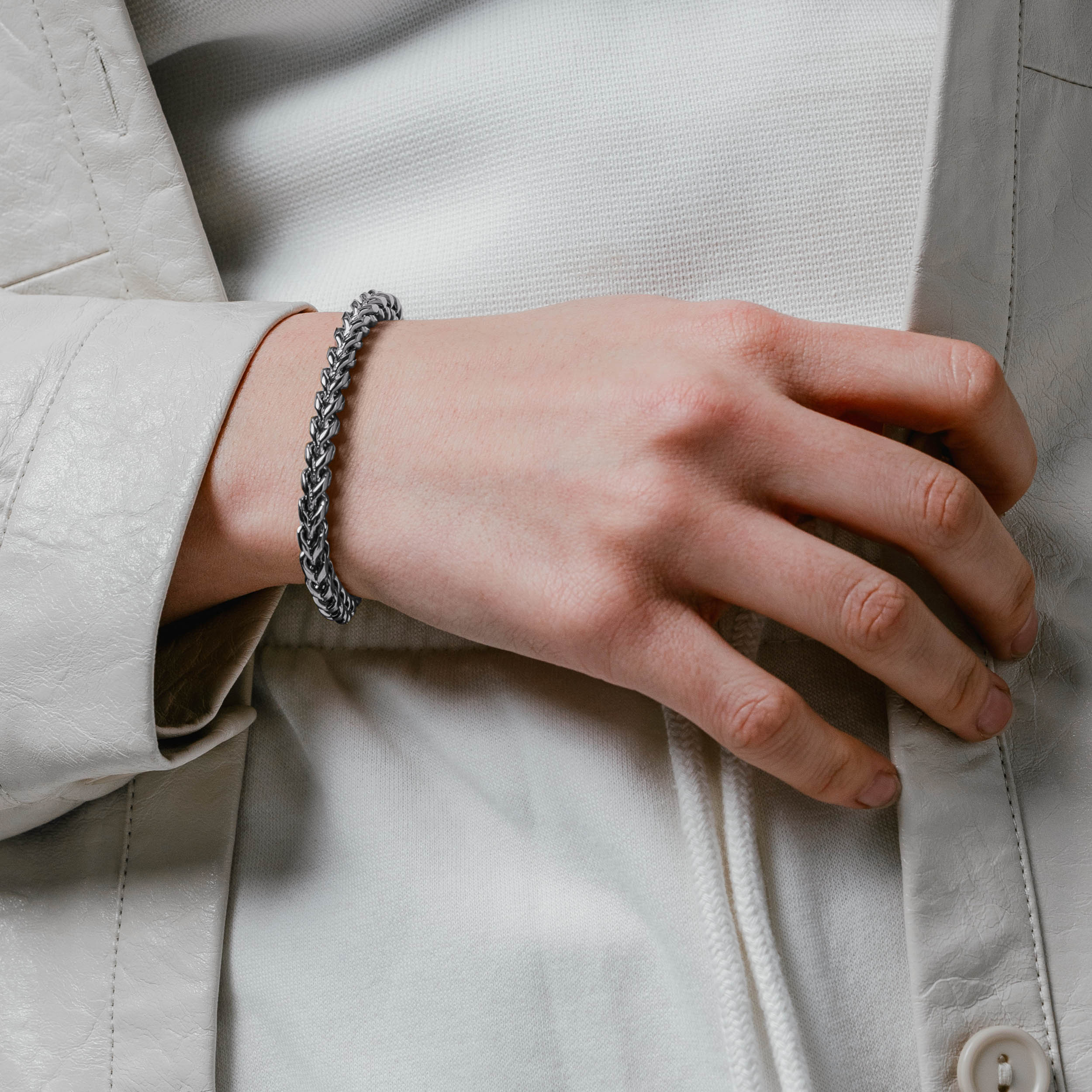 Kusari was the ancient Japanese term for chain mail armour worn by samurais in the 1300s. The tightly-woven linking pattern of this bracelet was inspired by this impenetrable protective gear.