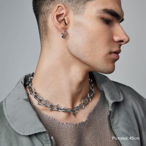 Defined by sharp lines. interlocking spikes and a sense of chaotic energy. the Nightmare is a provocative chain engineered to make a piercing impression. Finished with our signature Glyph carabiner clasp.
