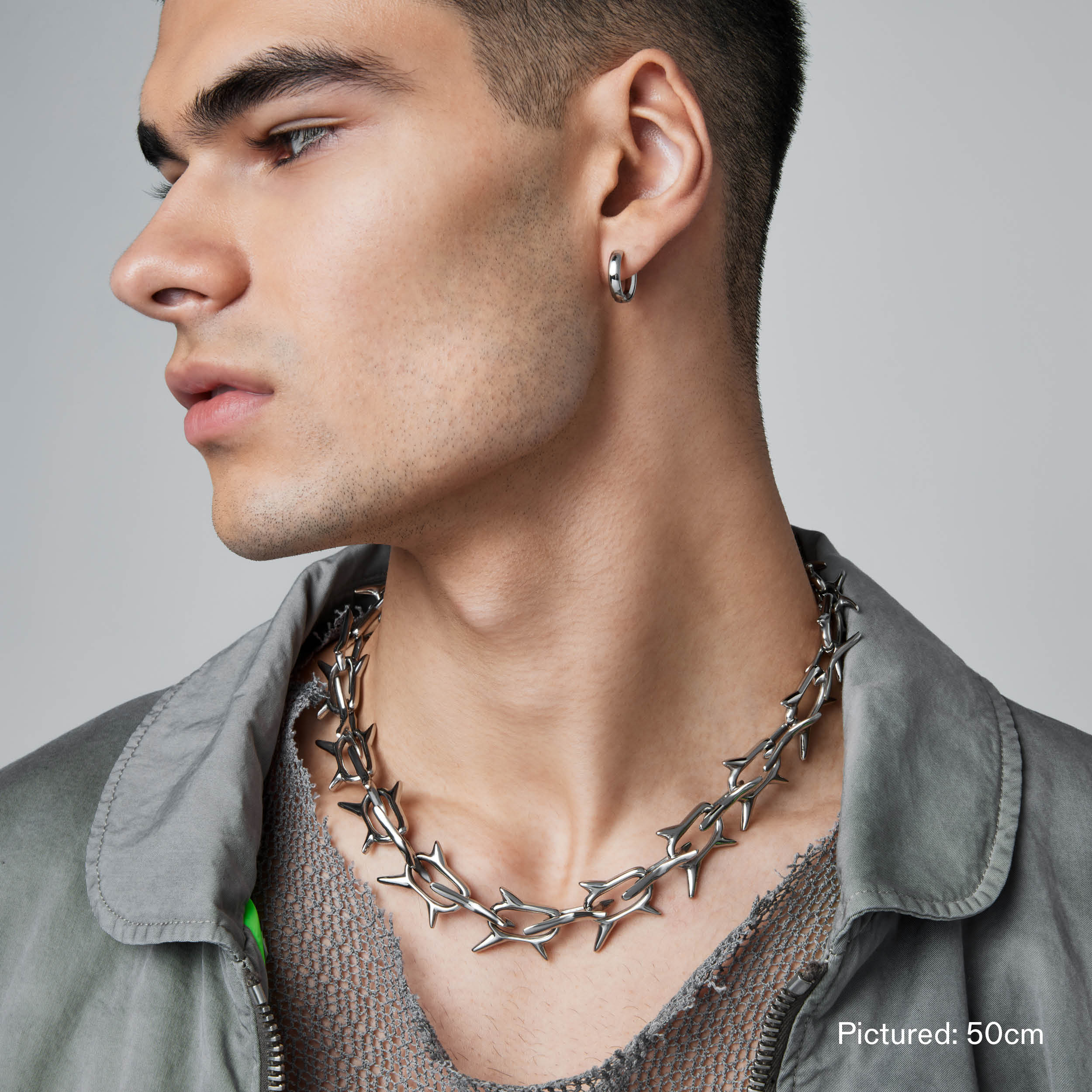 Defined by sharp lines. interlocking spikes and a sense of chaotic energy. the Nightmare is a provocative chain engineered to make a piercing impression. Finished with our signature Glyph carabiner clasp.