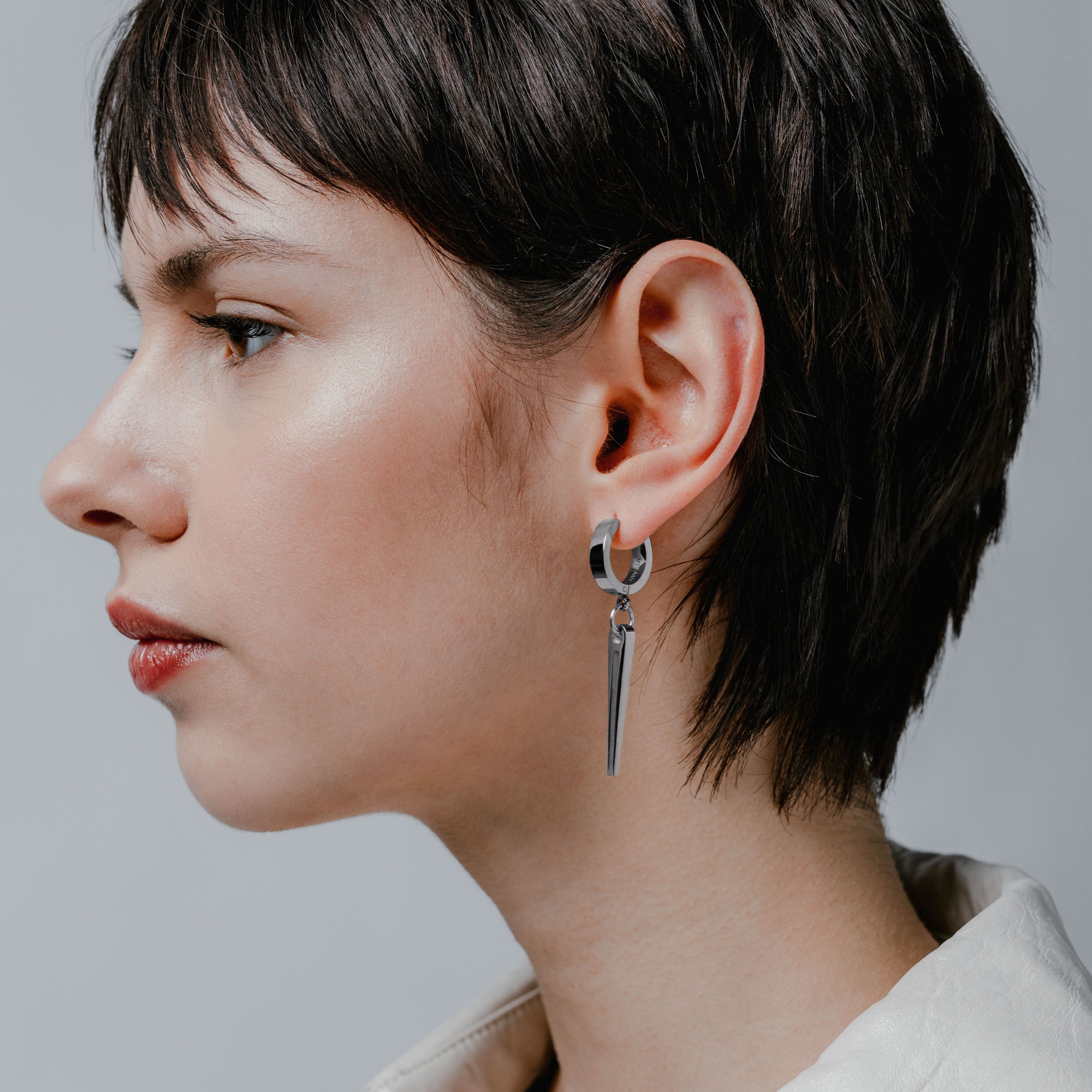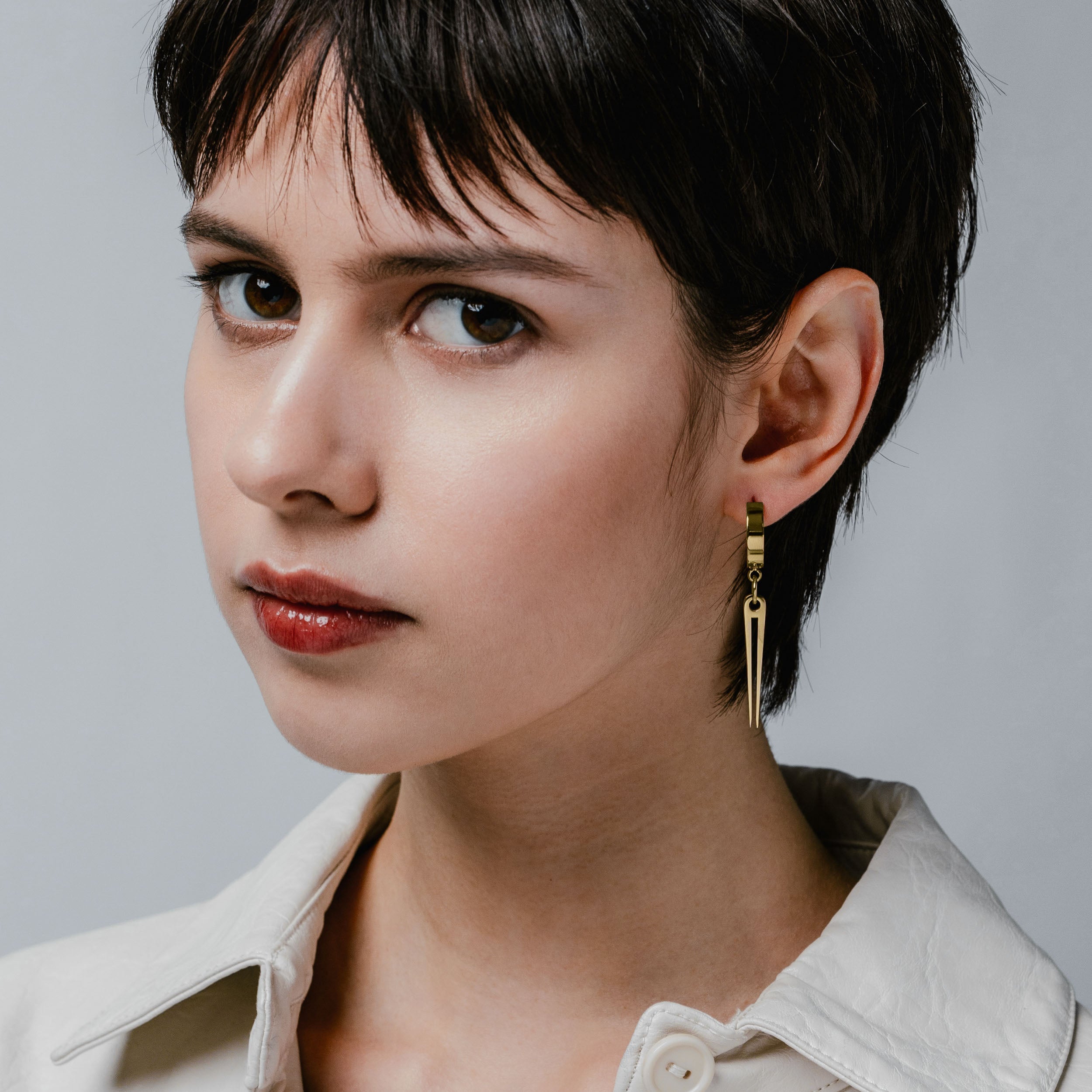 This single-earring design is inspired by the shape of a harmonic tuning prong.