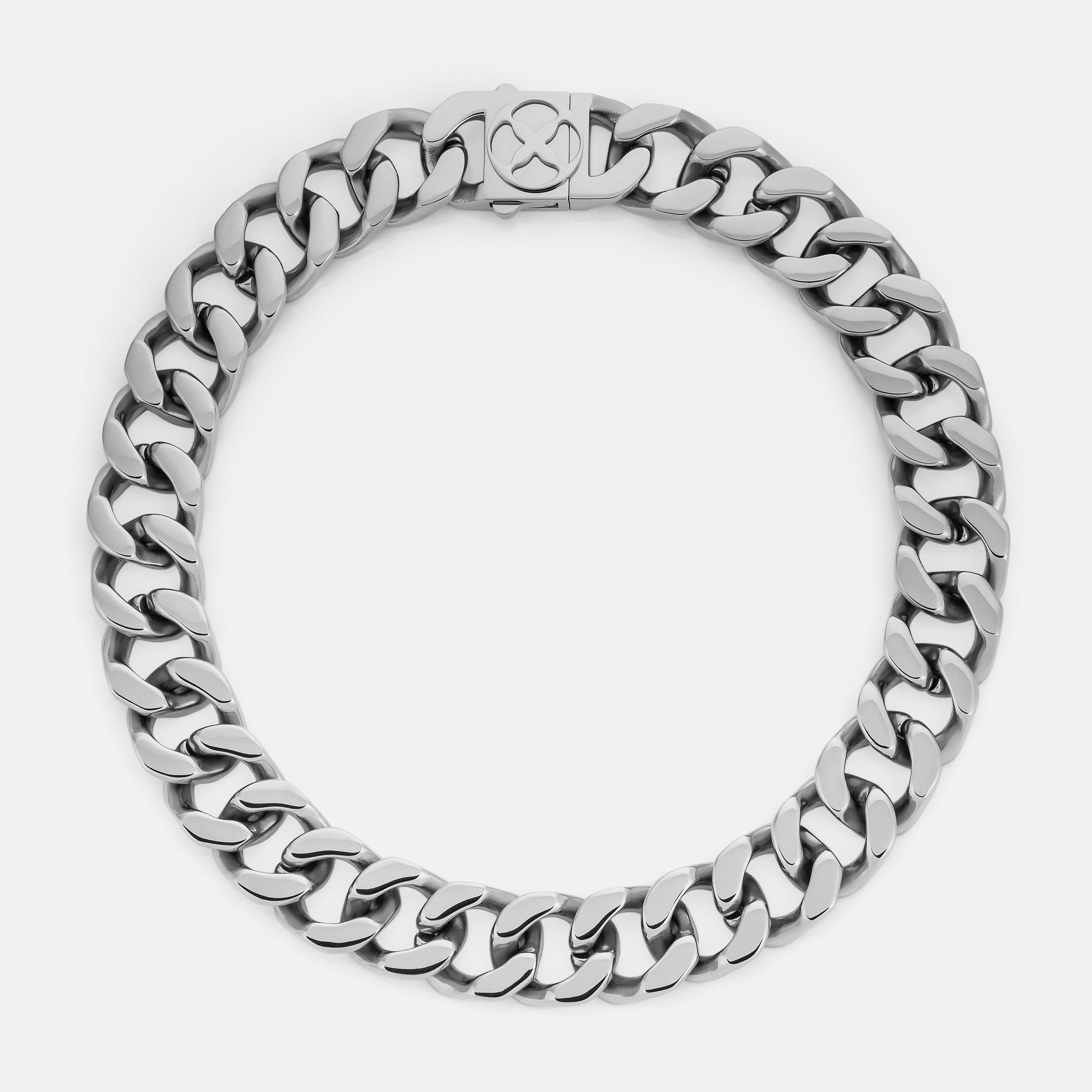 This heavy-duty choker chain is composed of a substantial 0.8 link and clamps shut with our signature Glyph buckle clasp. The double-sided clasp features a laser-etched logo on the reverse side and can be worn forwards. asymmetrically or at the back of the neck.