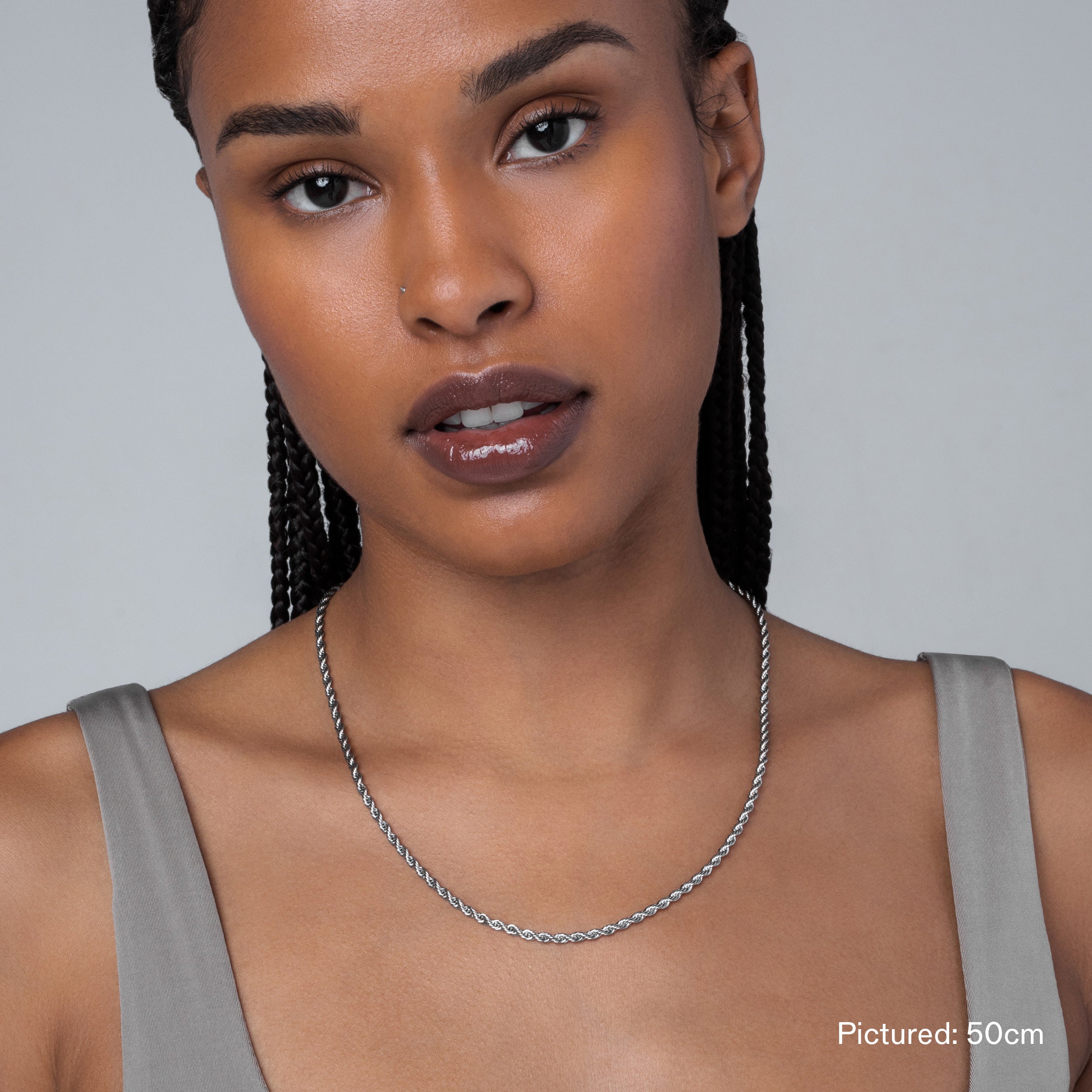 Single 45cm. 50cm. or 55cm length Rope chain. 3mm thick. Finished with our signature Glyph clasp tag.