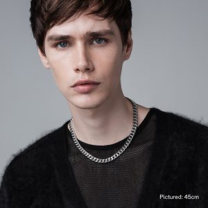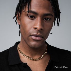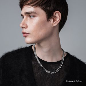 The Source is constructed from tightly woven 9mm Cuban links. giving it a solid. compact aesthetic. Comes in three lengths and finishes with a minimal laser-etched buckle clasp. Can be worn on its own or layered with other chains and pendants.