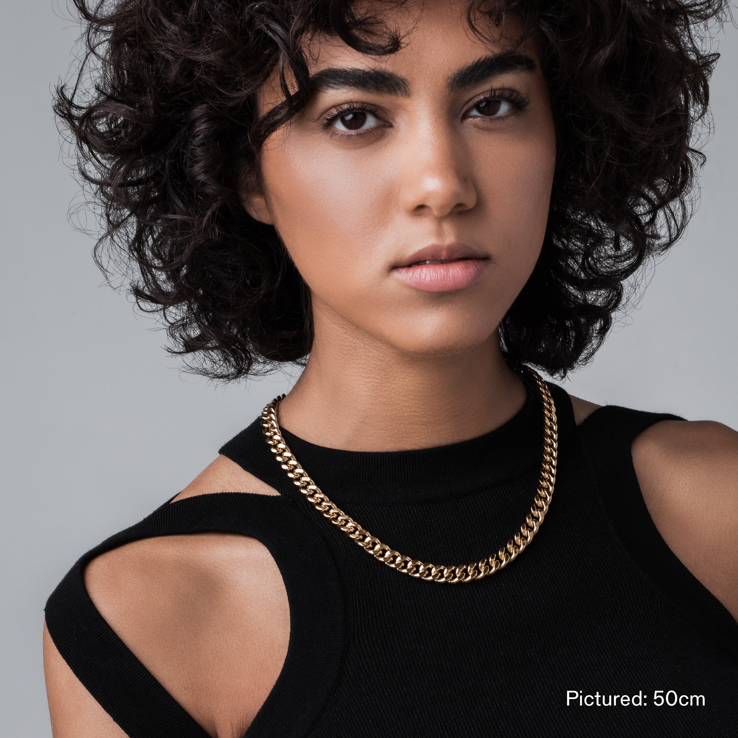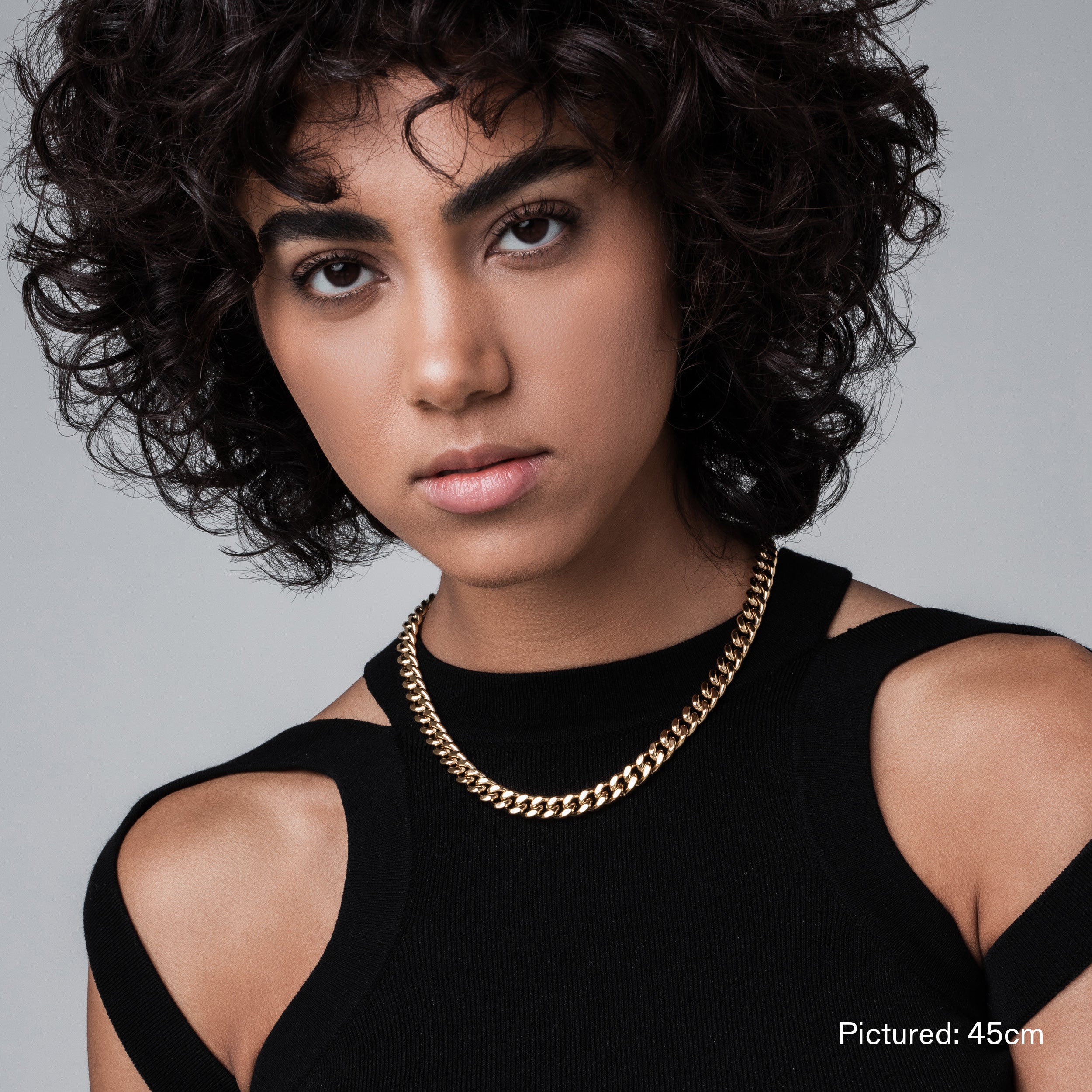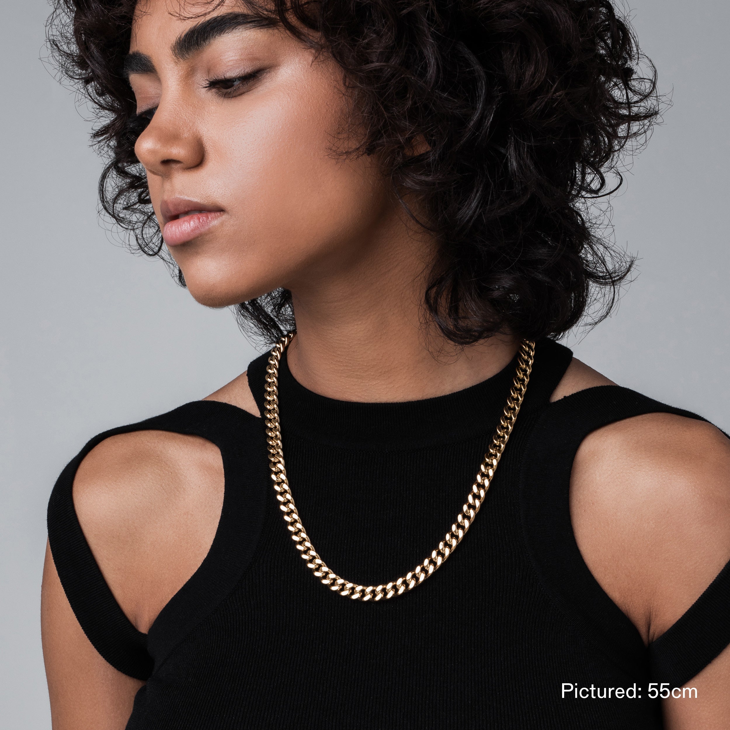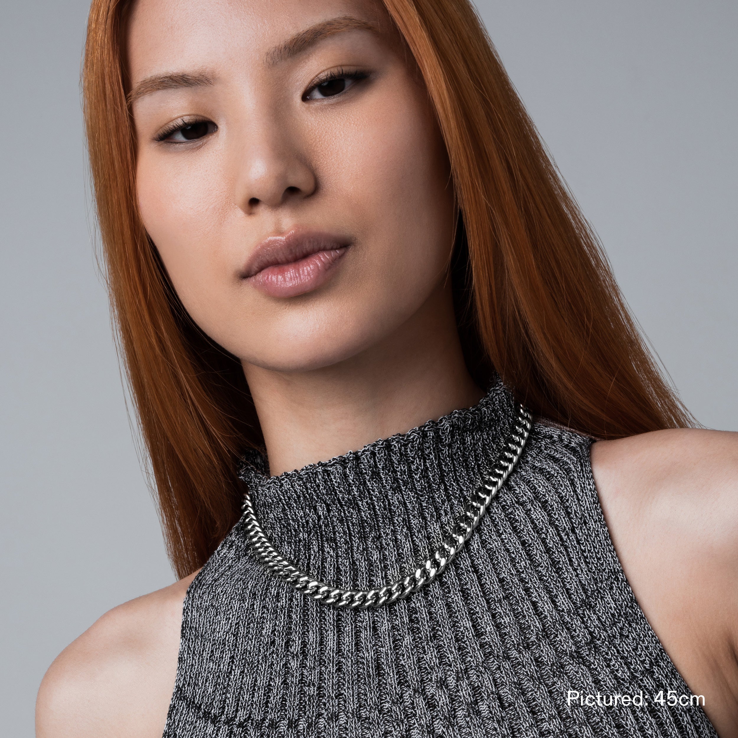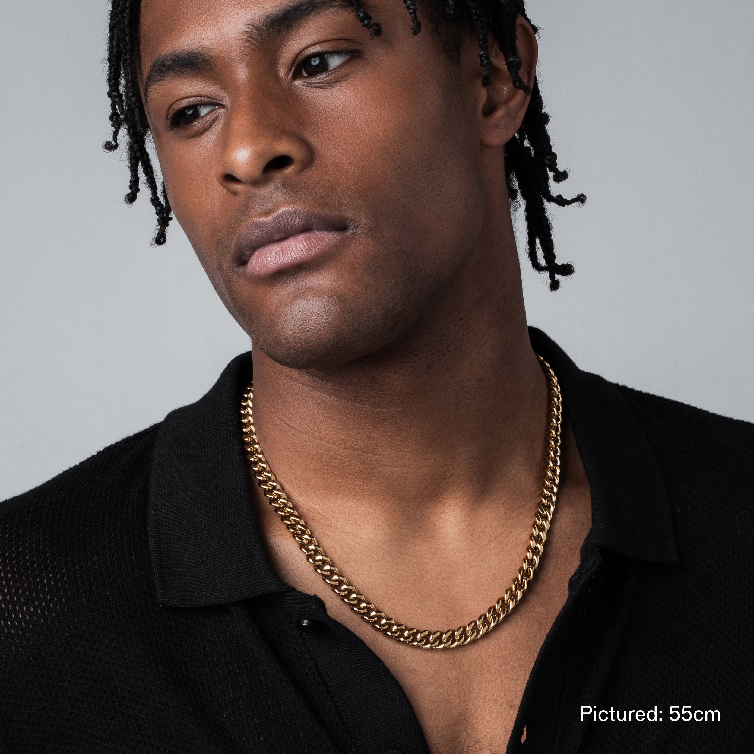 The Source is constructed from tightly woven 9mm Cuban links. giving it a solid. compact aesthetic. Comes in three lengths and finishes with a minimal laser-etched buckle clasp. Can be worn on its own or layered with other chains and pendants.