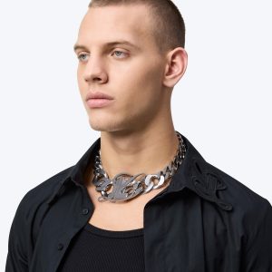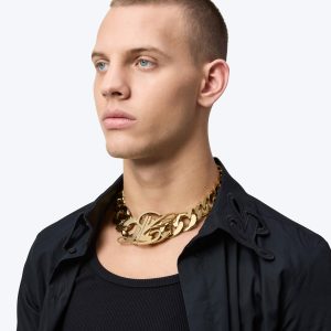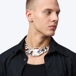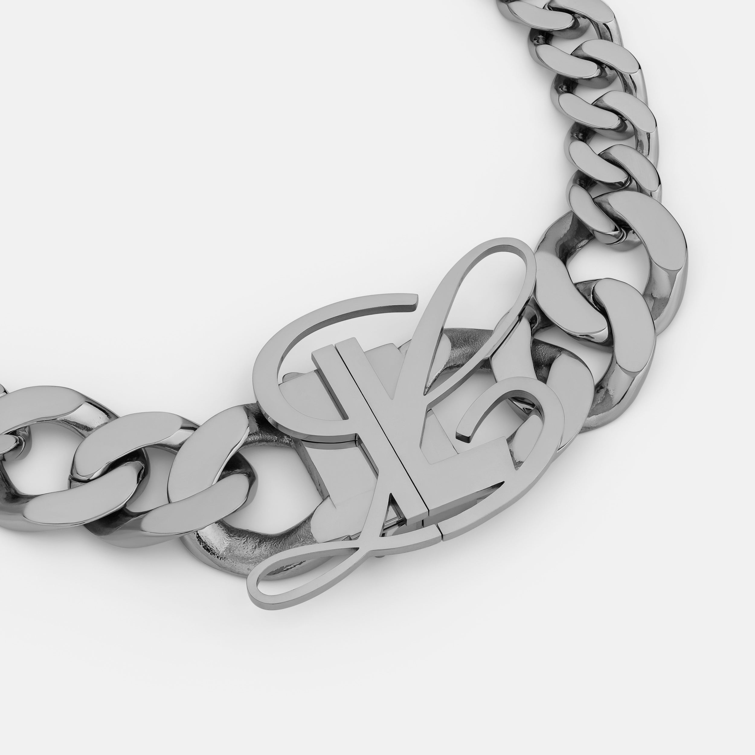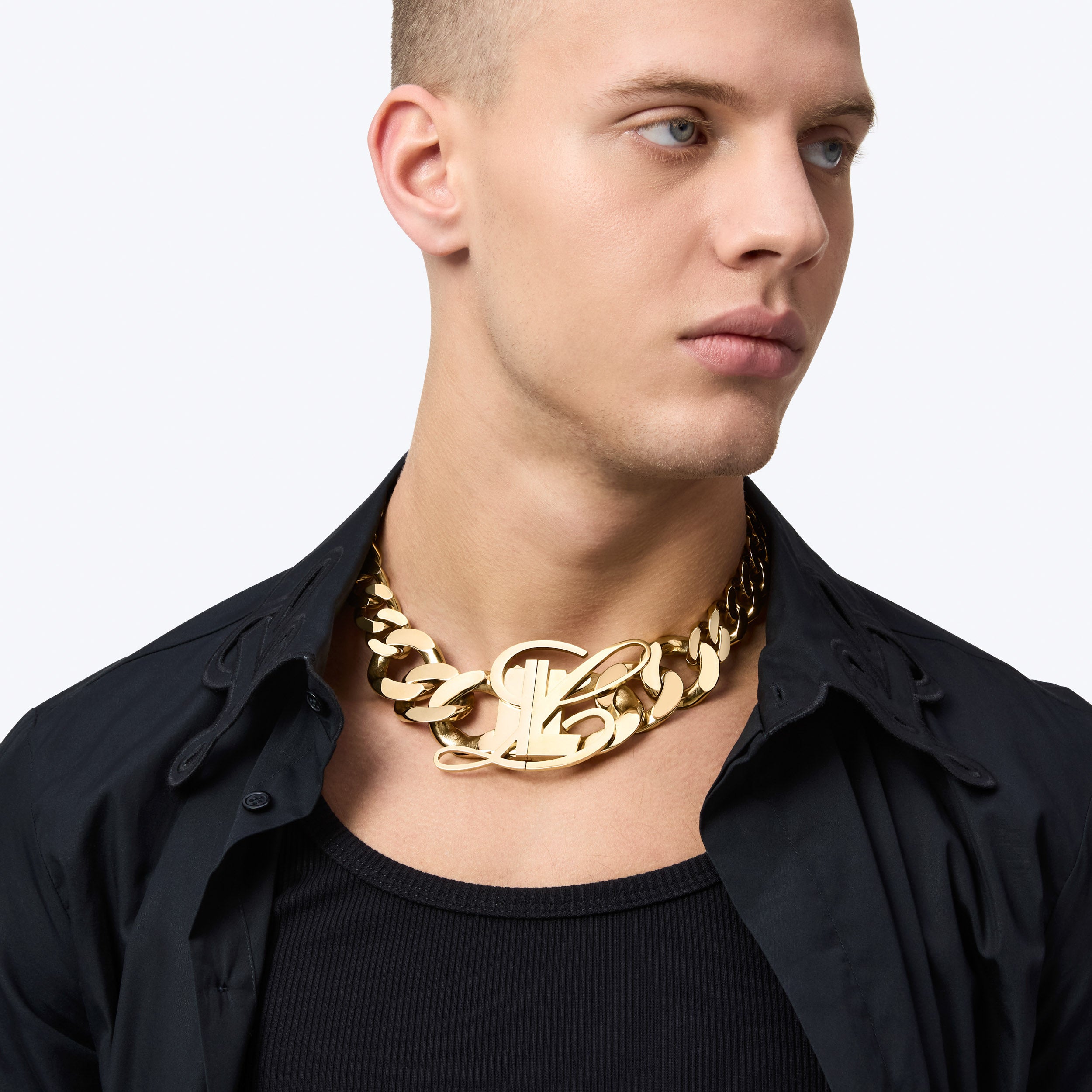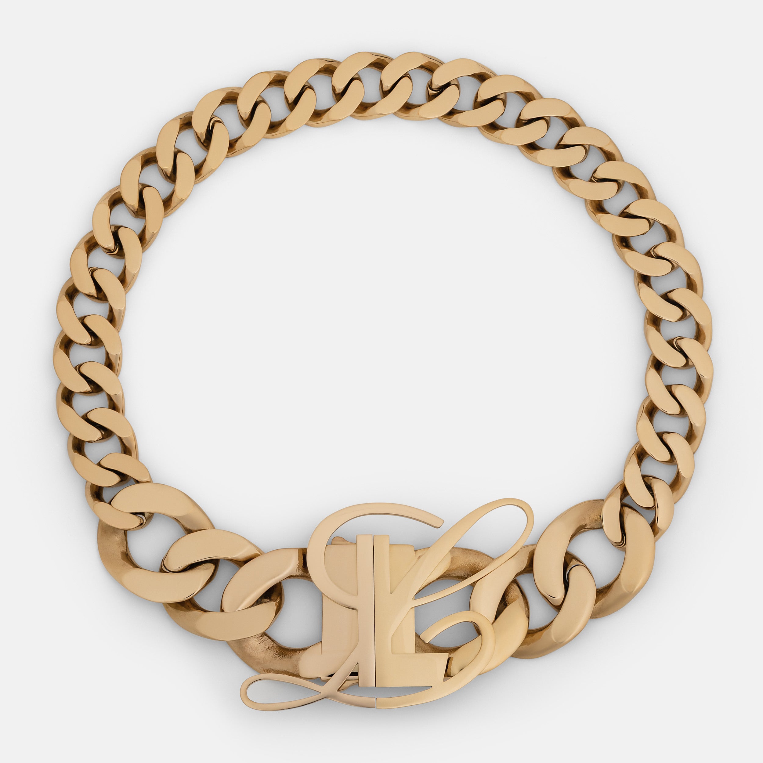 Designed in collaboration with . Chain_03 is a statement piece that fuses high-end glamour with the unapologetic realness of the block. Drawing inspiration from the oversized. statement pieces worn by the figures from Raul’s youth he combines the opulence of luxury with the audacity of hood culture — commanding attention with its oversized signature L monogram buckle clasp with supporting curb links.