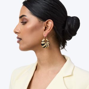 Sculpted in high-polish stainless steel. the voluminous form is segmented with high-contrast enamel inlays. creating a layered. dimensional effect to its curvatures. While the mixing of gold. silver. and black references directly to Raul’s own jewelry styling
