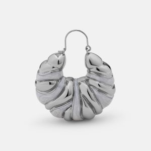 Designed in collaboration with . these earrings engineer the duality of granny heirlooms and hood jewelry with industrial precision. A structural reinvention of the classic croissant earring. Earrings_02 elevates a vintage silhouette into a modern. hyper-glamorous statement.