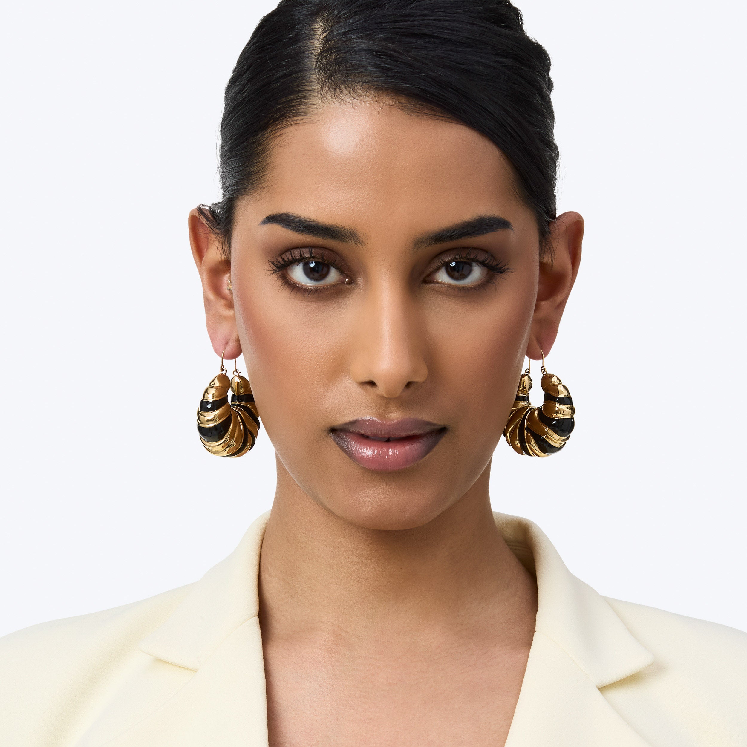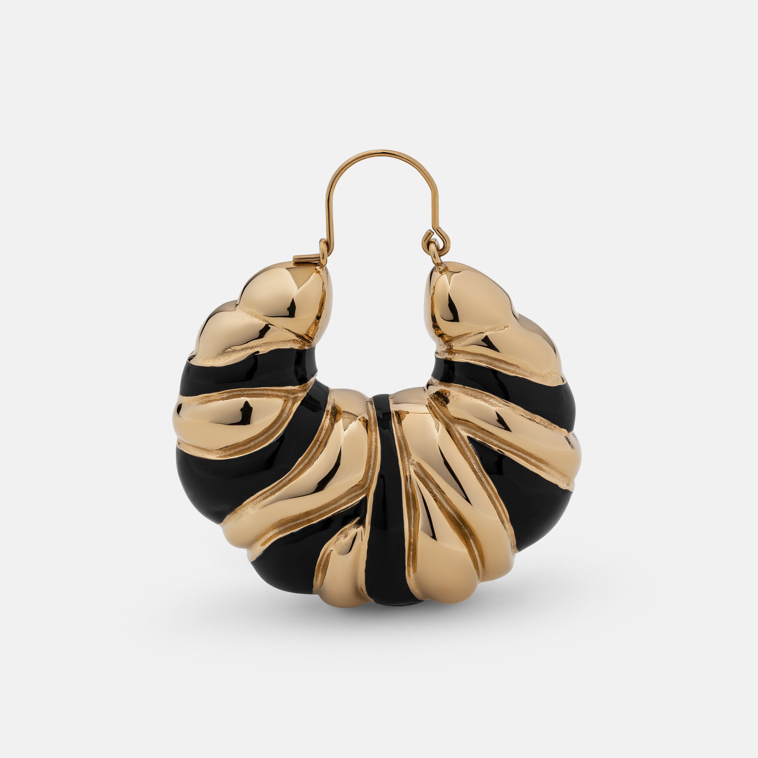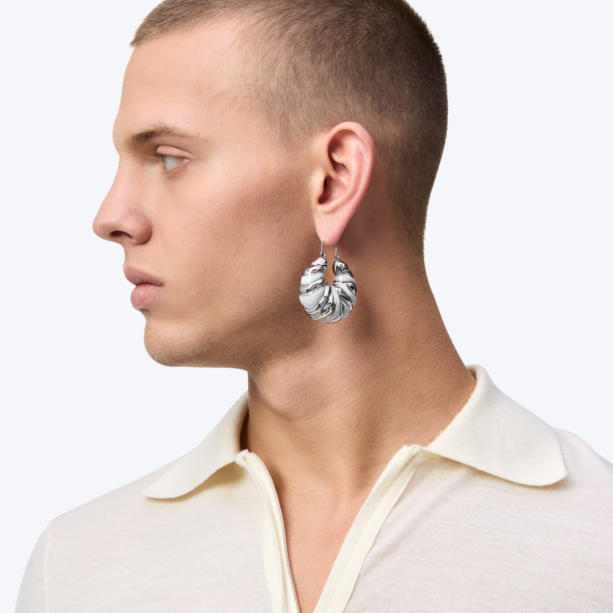 Designed in collaboration with . these earrings engineer the duality of granny heirlooms and hood jewelry with industrial precision. A structural reinvention of the classic croissant earring. Earrings_02 elevates a vintage silhouette into a modern. hyper-glamorous statement.