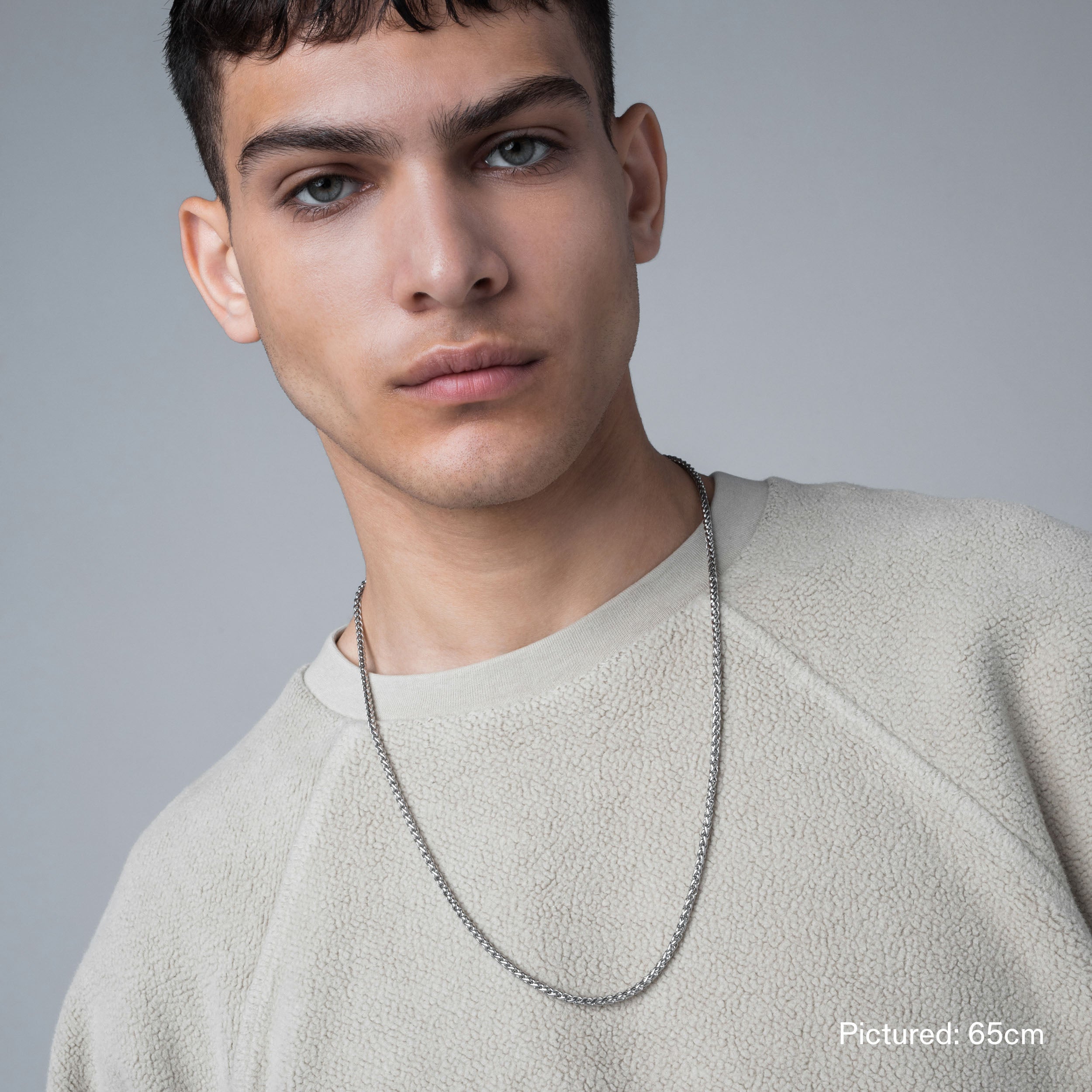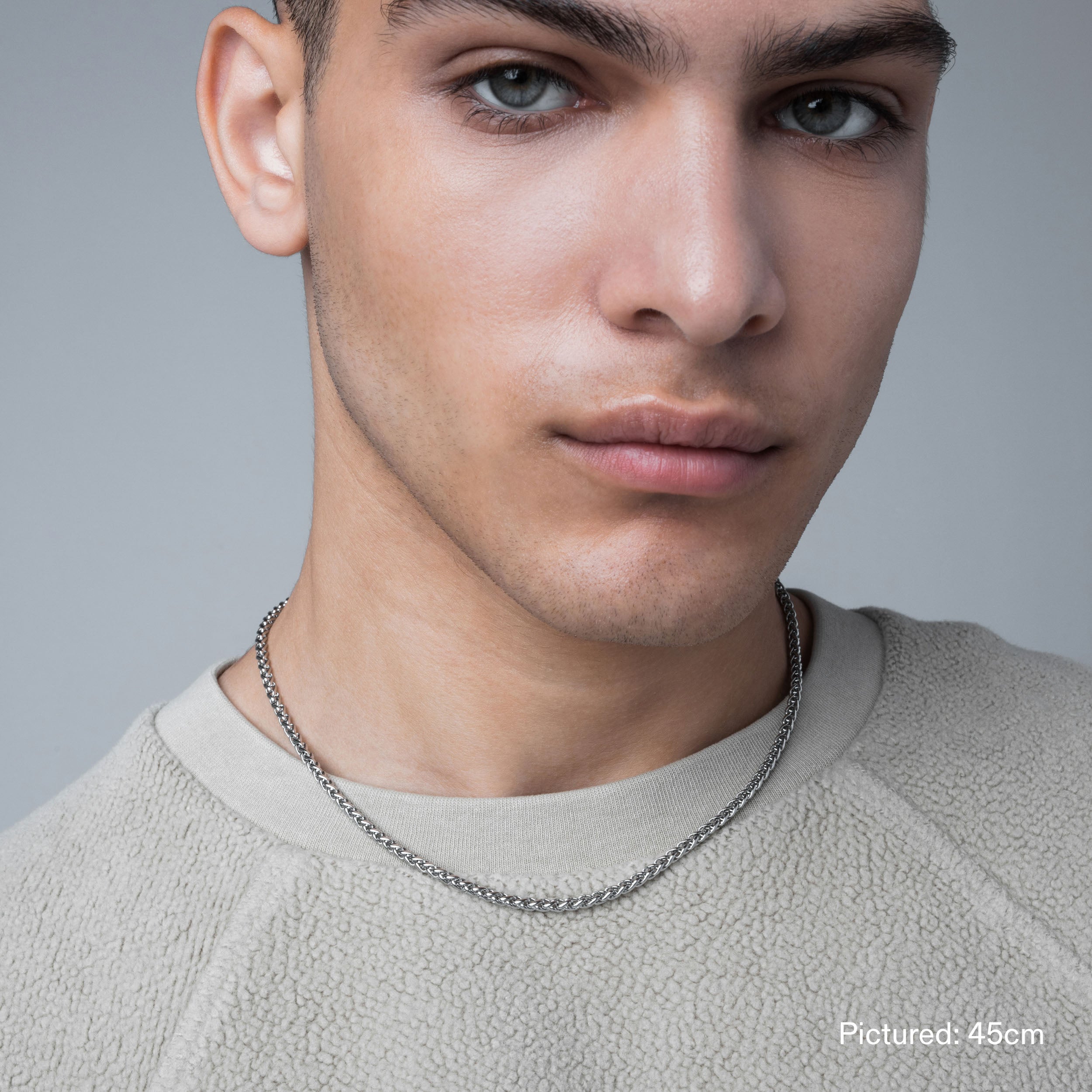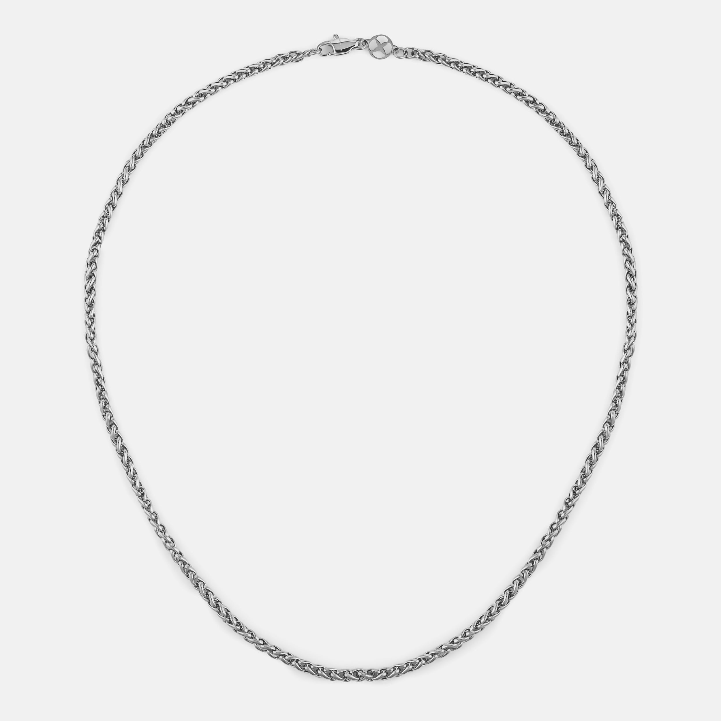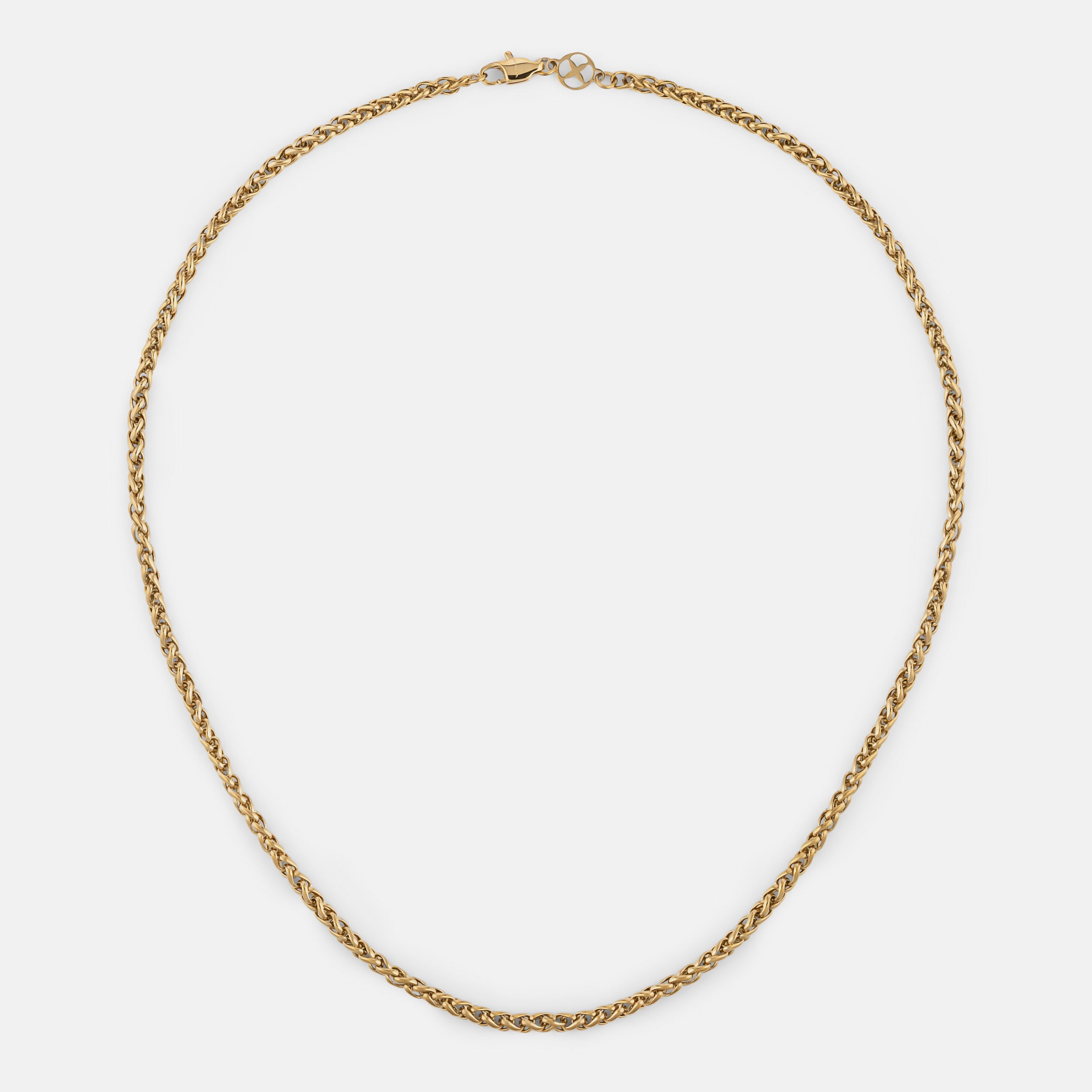 Single 45cm. 55cm. or 65cm length Wheat chain. 3mm thick. Finished with our signature Glyph clasp tag.