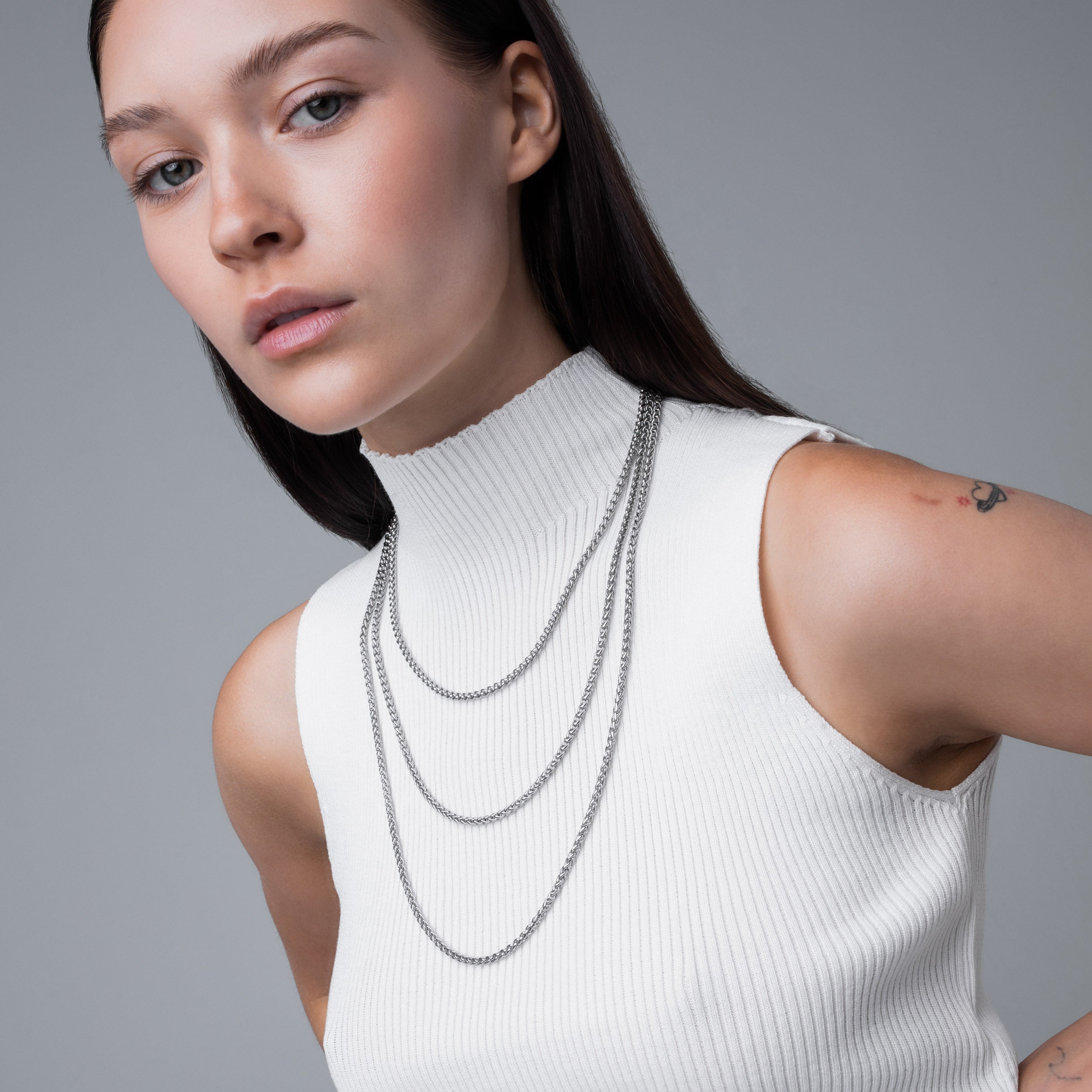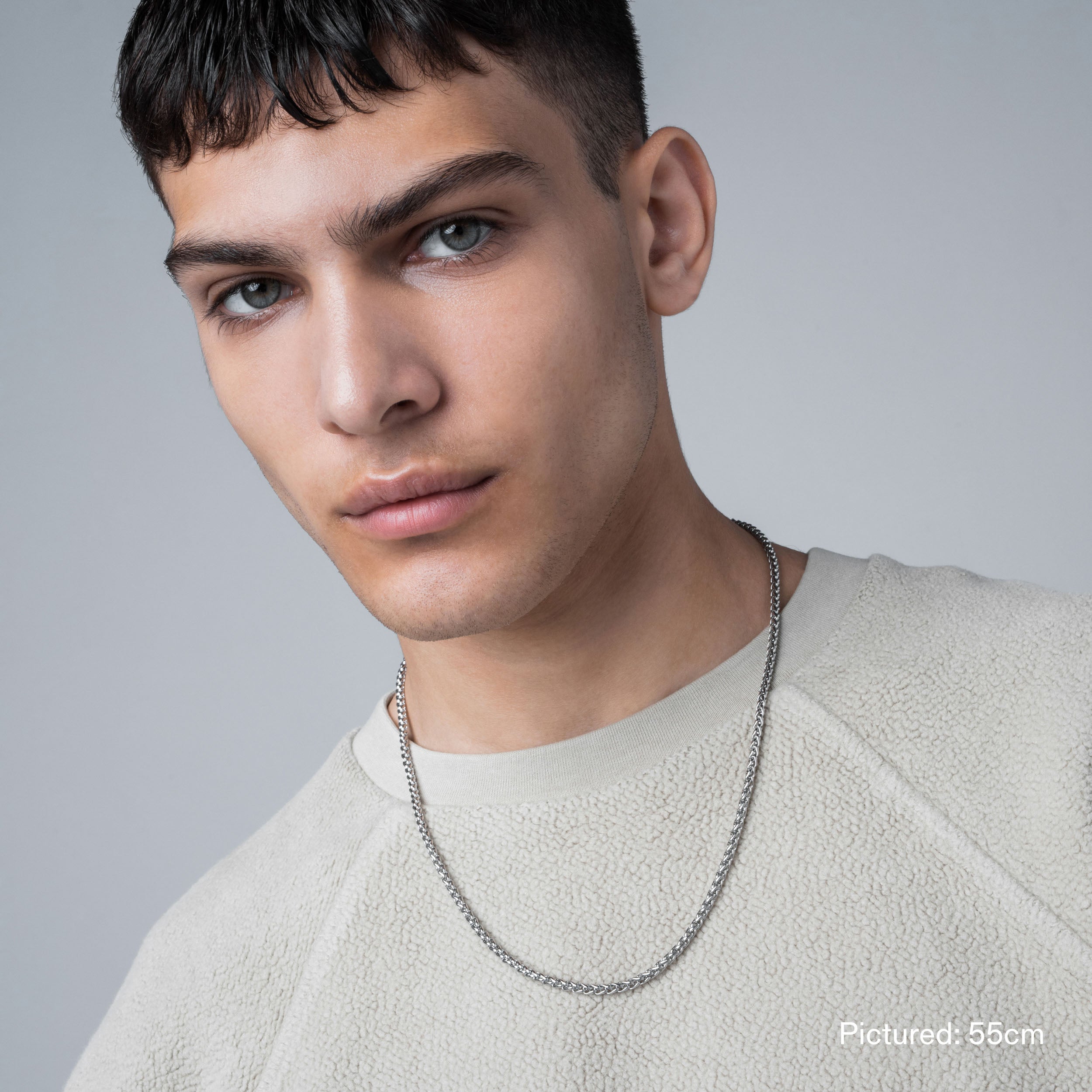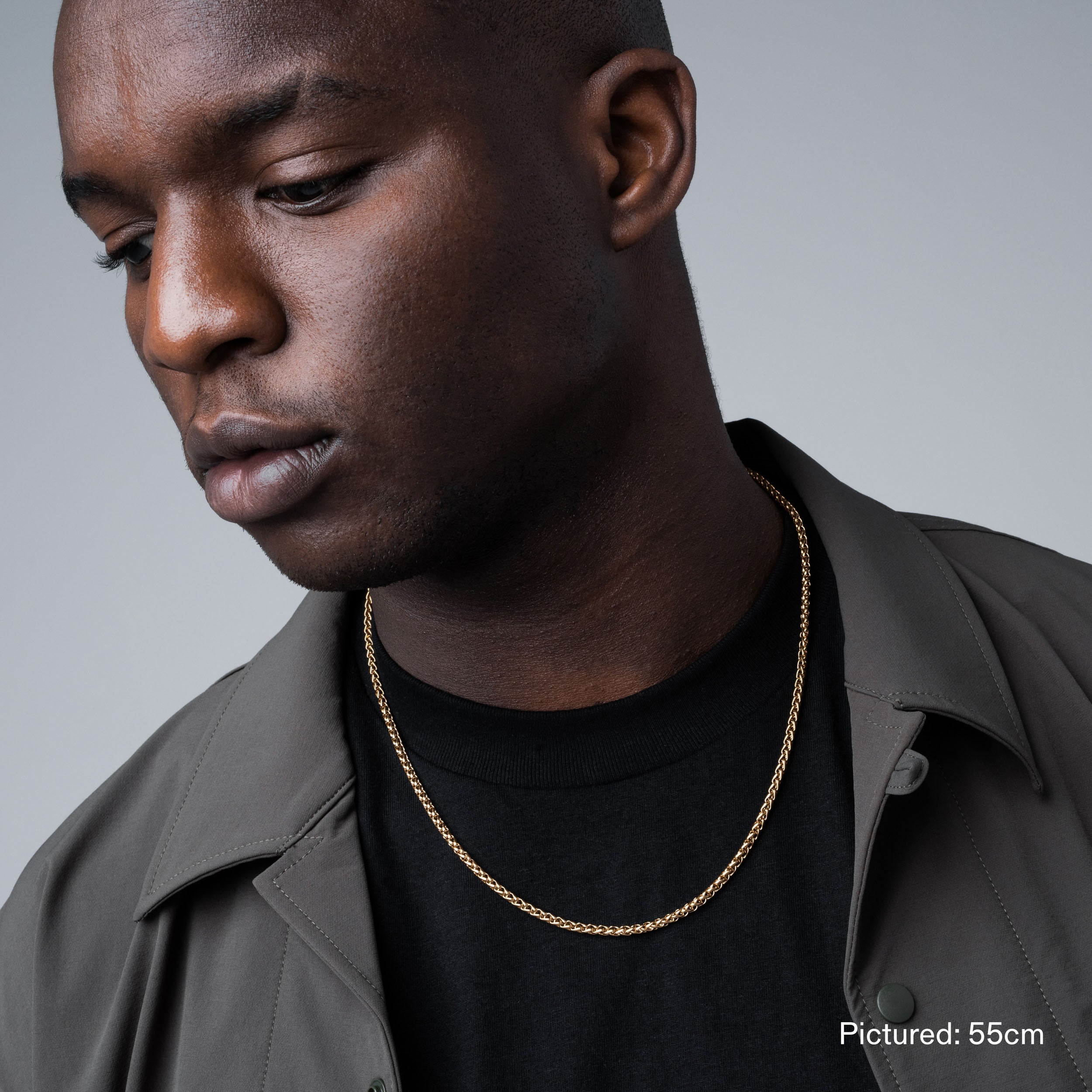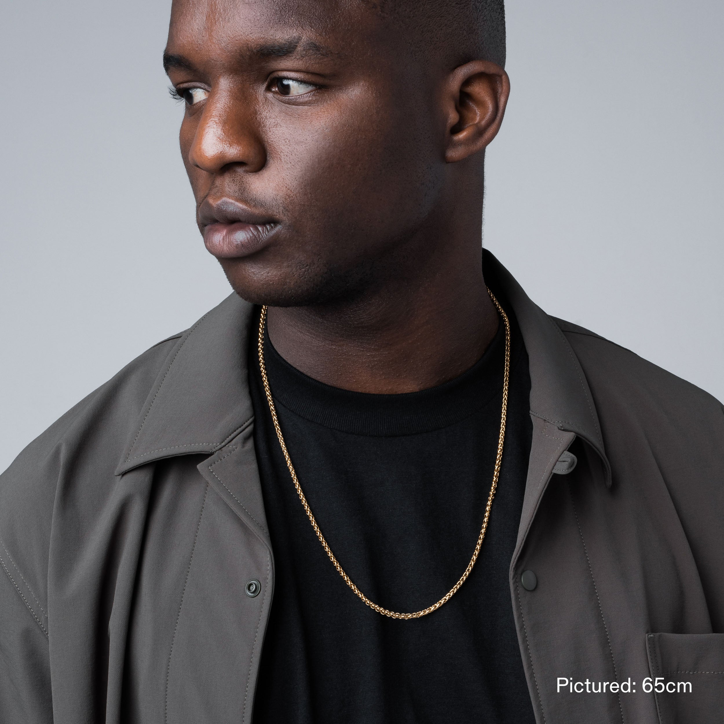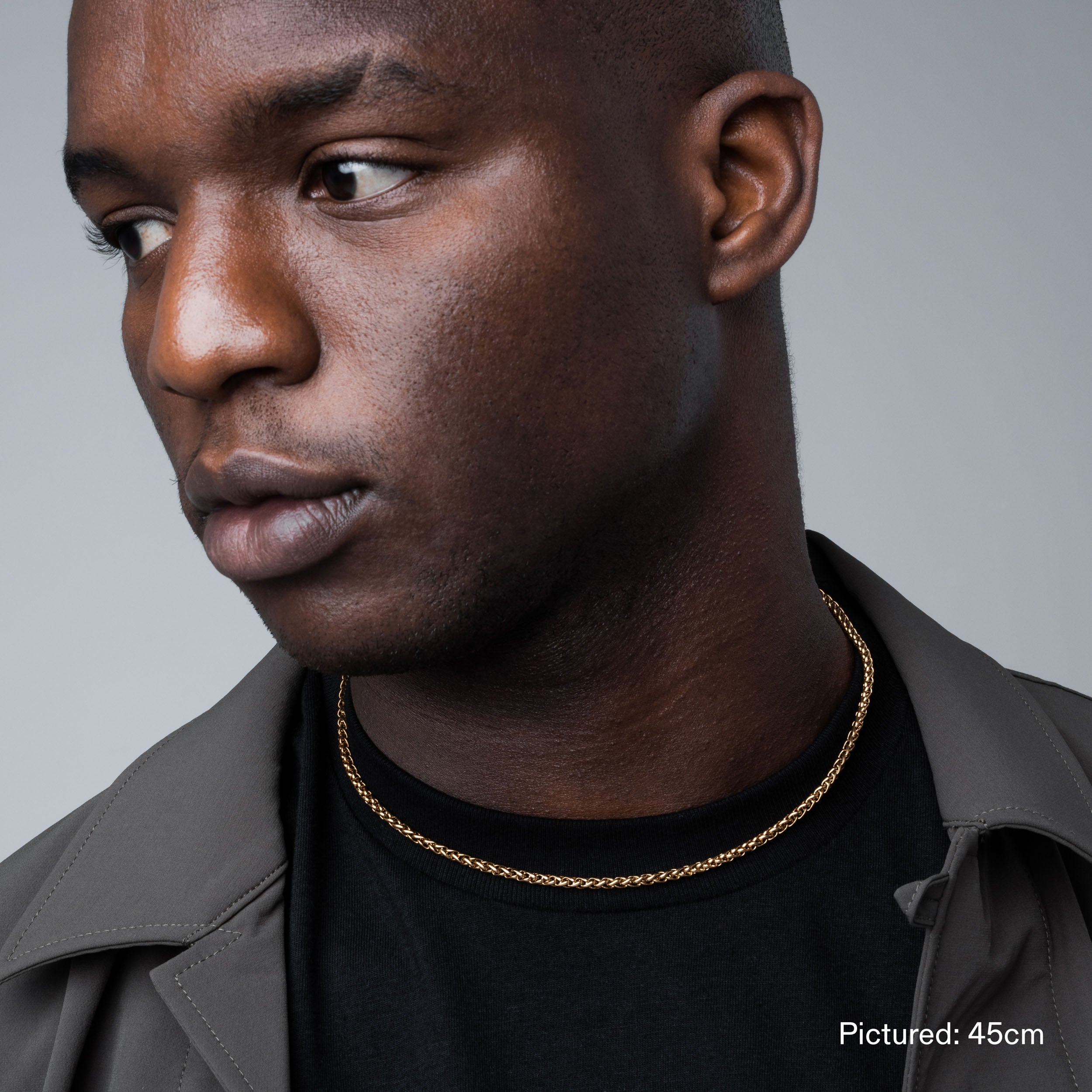 Single 45cm. 55cm. or 65cm length Wheat chain. 3mm thick. Finished with our signature Glyph clasp tag.